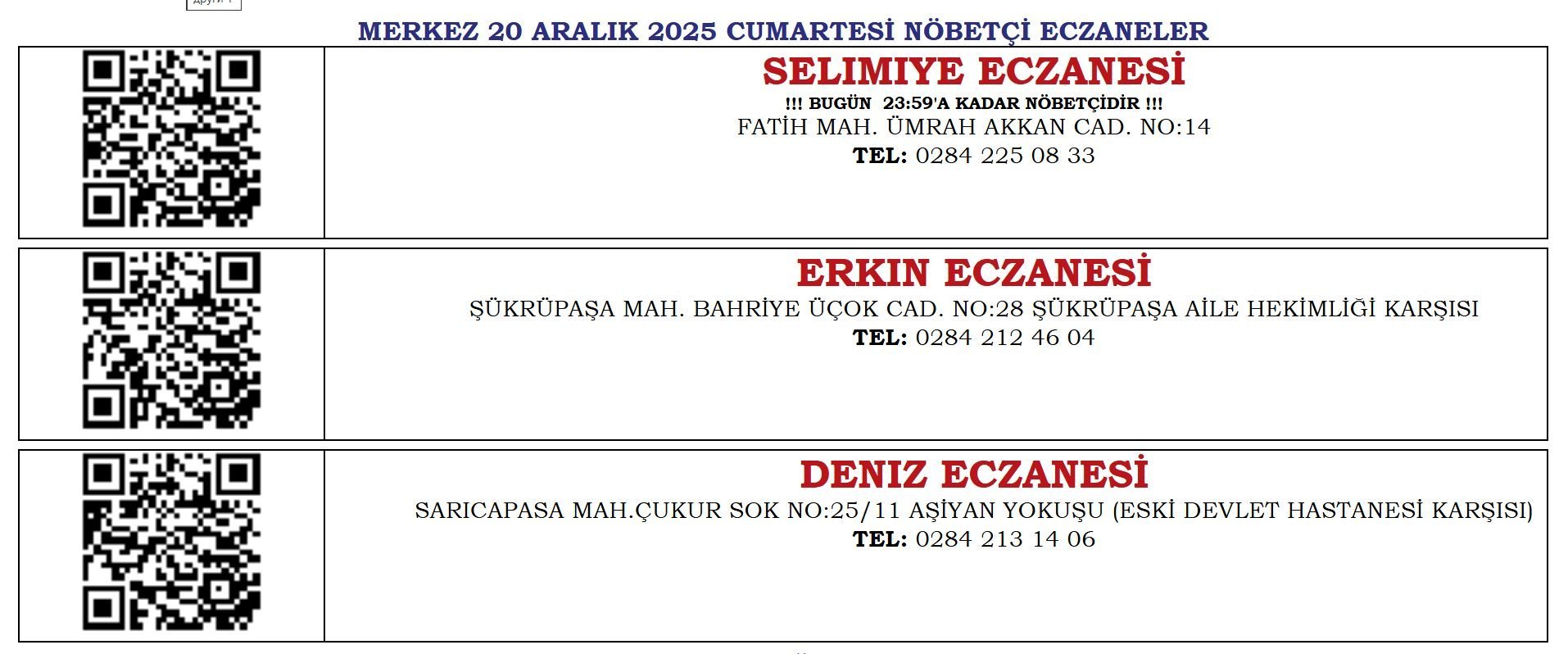 Здравейте, къде мога да видя кои ще са дежурните аптеки в Одрин събота, 20 декември?