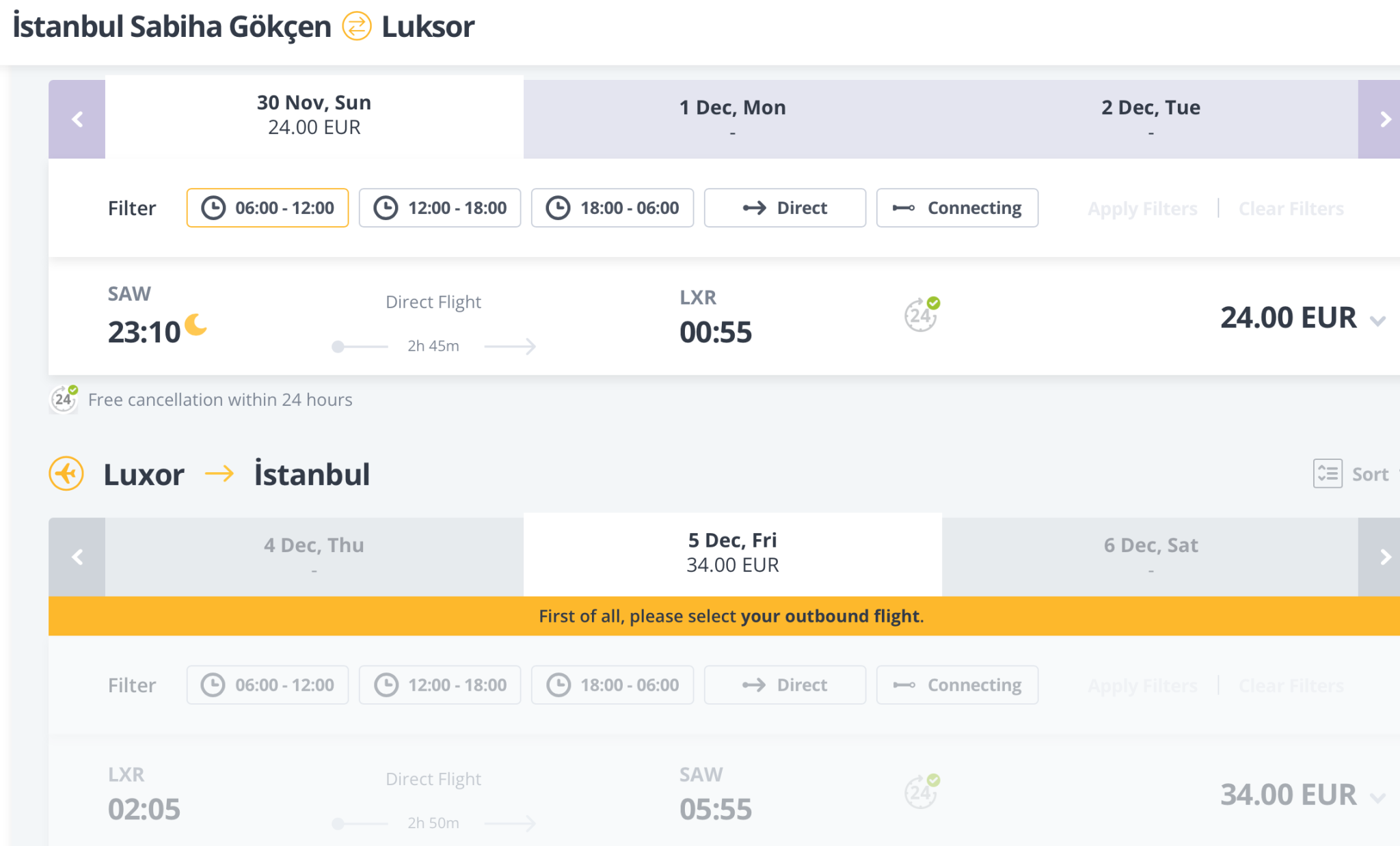 Цени от 58 евро до Луксор двупосочно с таксите (от Истанбул С.Гьокчен)