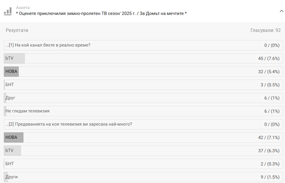 За отправен пункт бе използвана мащабната анкетата от тема 4, която определи кои са любимите ни родни риалити формати!