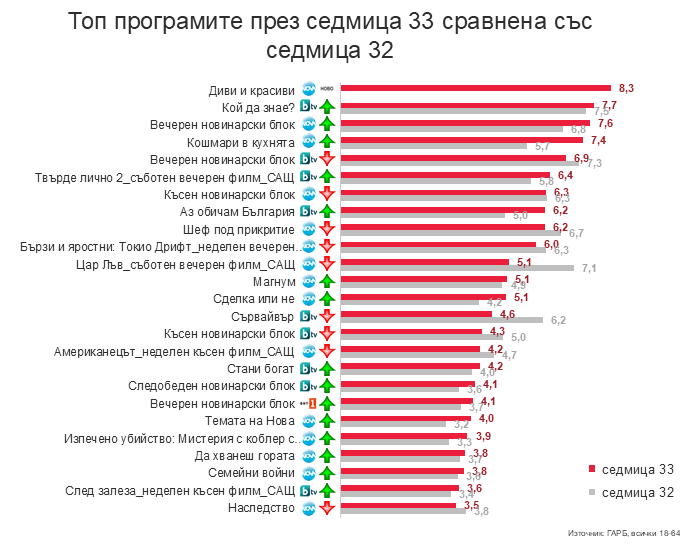Прави впечатление и сериозният спад на Сървайвър: Скритият идол, което е логично предвид старта на ДиК.
