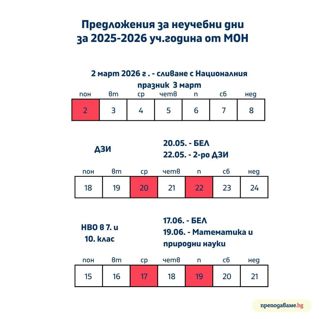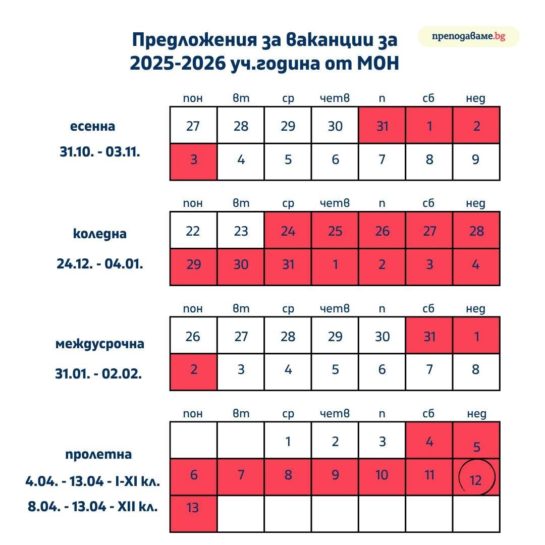 Излязоха предложенията за ваканции за учебната 2025/2026 година.