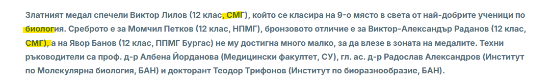 Макар и миналият випуск сам по себе си да беше изключителен, СМГ винаги са били силни И в природните науки.