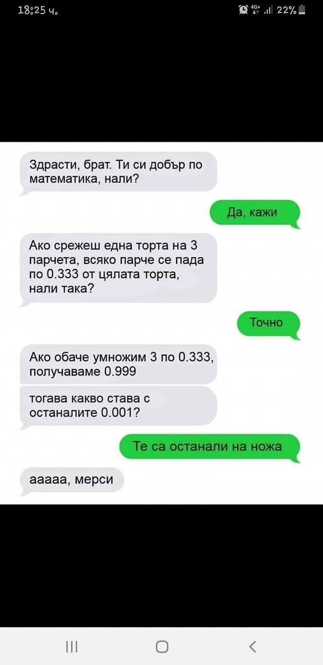 А математиката, в "интегрален" формат, ако я комбинират с измишльотината "здравно образование" (като част от биологията), би могло да включва въпроси от рода на "Колко пъти на ден трябва да си мием зъбите?" или "Кой метод НЕ предпазва от нежелана бременност?". Не че здравното образование е измишльотина, а потенциалните въпроси вероятно ще бъдат просто безумни, но ще дават точки в общия резултат от теста. И повечето деца от обща култура би трябвало да дадат верни отговори, но това няма да допринесе да се селектират най-добрите по знания и аналитични способности. Примерната задача за диоптрите - пак от личен опит ще говоря, като човек, който носи очила от 4 клас. Като дете/ученичка с очила, знаех от личен опит как се определят диоптрите, кое е късогледство и кое далекогледство, съответно с + или - са диоптрите. Съучениците и приятелите ми, които не носеха очила, обаче, това не го знаеха. Вероятно някъде в гимназията по биология, може би в 10 клас (от 11 класа) май учихме за късогледство и далекогледство, т.е. пред или зад очната леща е фокусът, как е кривата на лещата в двата варианта (и във варианта без нужда от корекция). Вече в средата на 20-те ми години млад лекар-преподавател в МА се опита да обясни, по възможно най-"простия" начин какво е астигматизмът.
