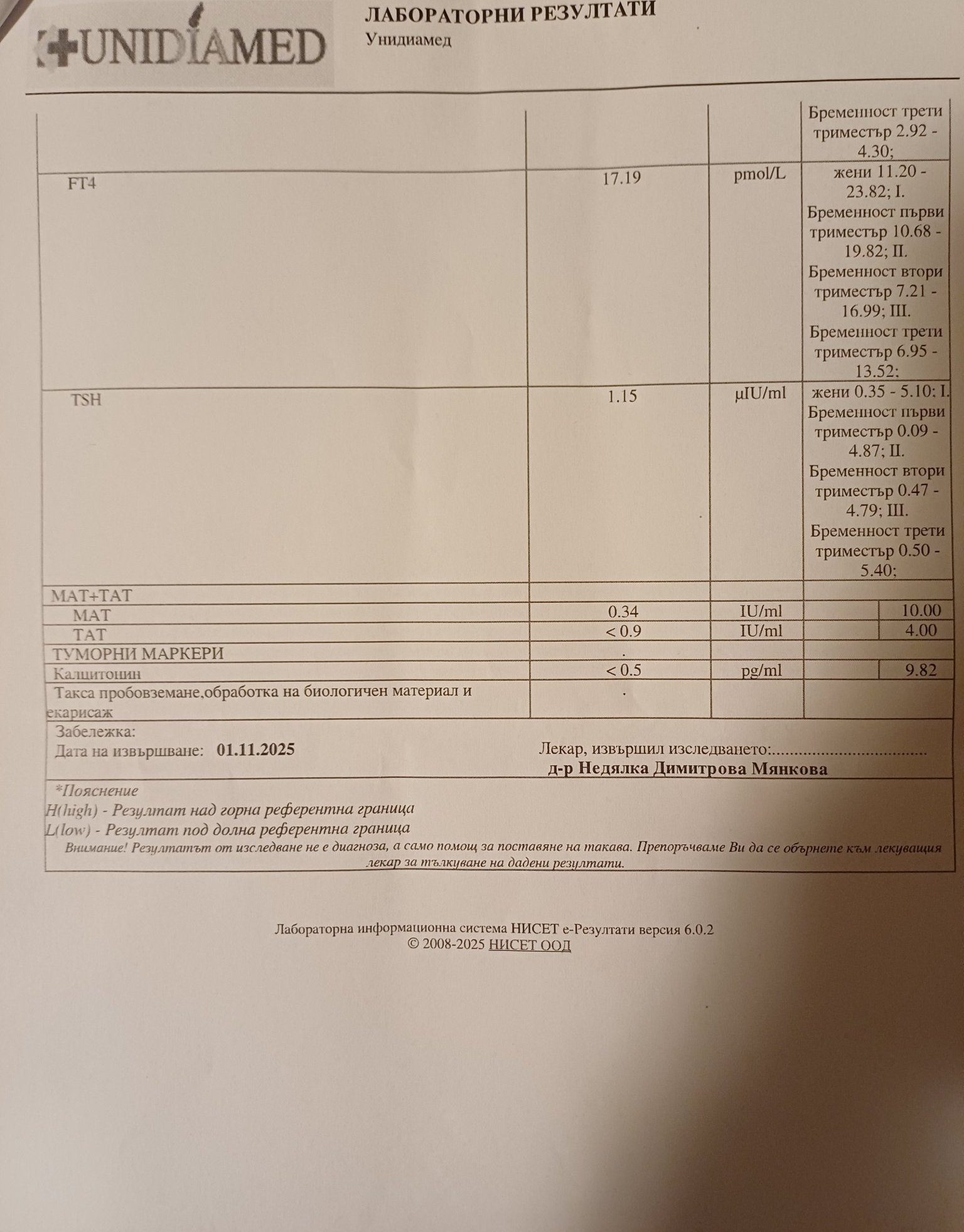 За възел на щитовидната не се приемат хормони като цяло. Витамин Д и Б12 са ниски обаче.