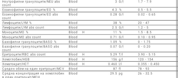 Докато другите показатели според мен са свързани един с друг и вероятно сочат дефицит на витамини В - В12 , фолиева...