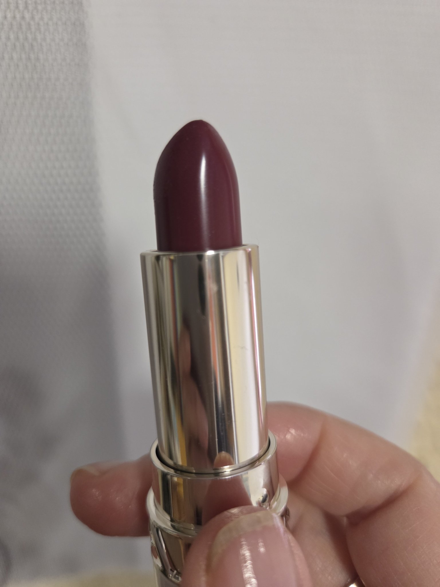 Вече съм на есенна вълна. Много приятен  цвят- води се слива. Търсих го в други брандове- Диор, Герлен, но го намерих само в Кларанс. Не е много трайно и затова продължавам да търся. Може би в други магазини на Дъглас го има, но в Бургас е това положението. Ще се радвам, ако ми подскажете какво да поръчам. Купеното на снимката е 744 S