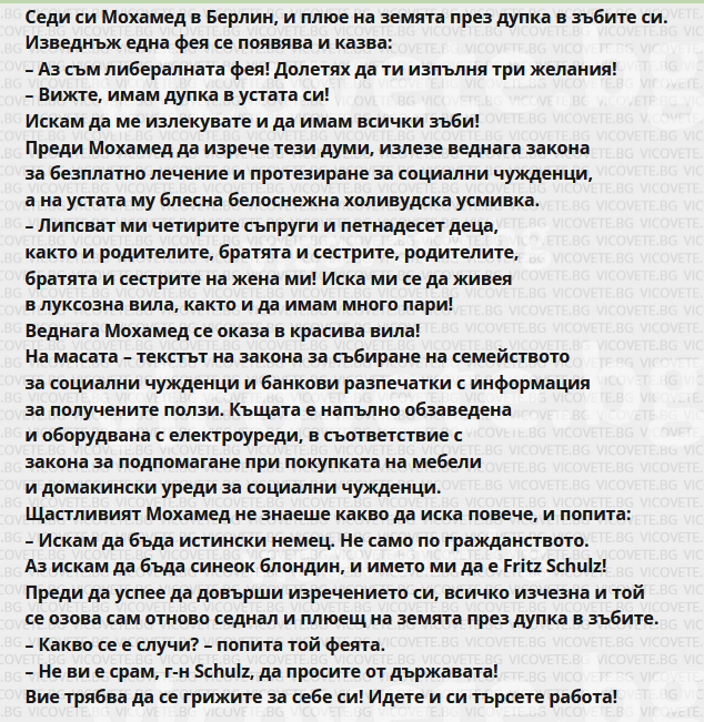 Всеки емигрант трябва да бъде длъжен да работи след преходен период за адаптация и ако не започне да му се реже издръжката. Да не се дава автоматично разрешение за водене на семейството. При първо нарушение на закона да се екстрадира...
