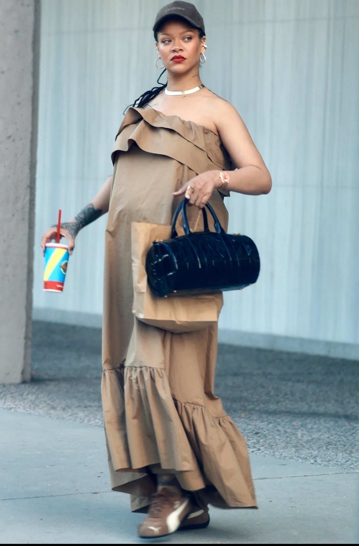 Супер е Риана тук, рядко харесвам червено червило, но на нея ѝ отива.