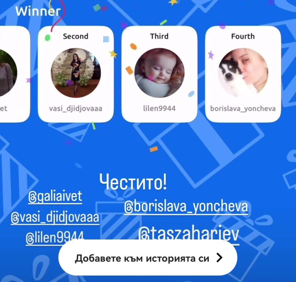 Kelly, на стори в Инстаграм ги обявиха. Направила съм екранна снимка. Ето ги: