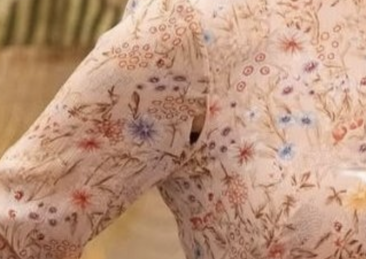 А така нар. "скъсано" на Мери май е част от шарката на плата, неудачно попаднала при шева на ръкава.