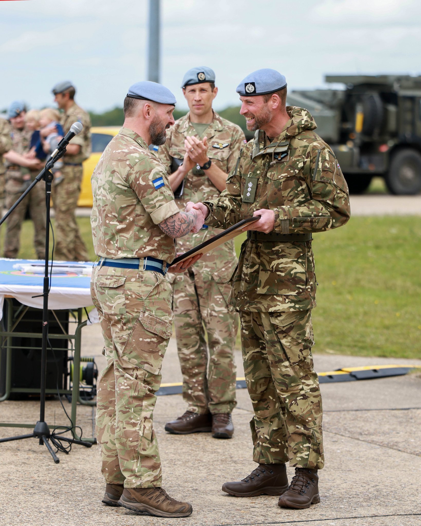 Принцът на Уелс връчи кралска похвала за ценна служба по време на посещението си, както и повишението на войниците от ефрейтор в сержант.