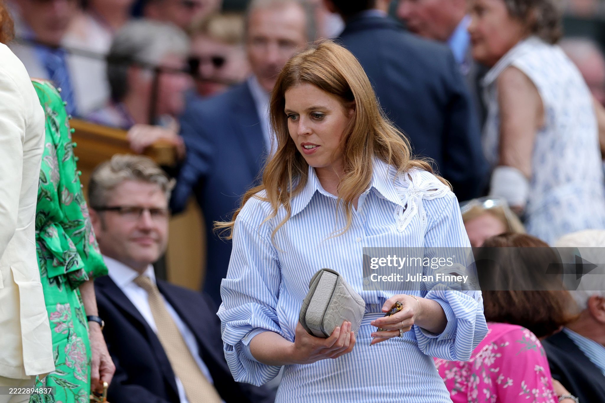 Принцеса Беатрис, придружена от майка си, пристигна в кралската ложа за мача от първия кръг на сингъла при джентълмените между Фабио Фонини и Карлос Алкарас.