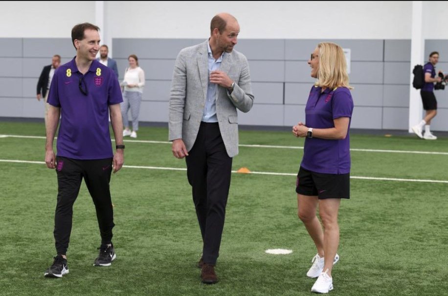Принцът на Уелс, патрон на Футболната асоциация (FA), в момента посещава „Сейнт Джордж Парк“, националния футболен център на Англия, за да се срещне с женския отбор на Англия „Лъвиците“ и да им пожелае успех в състезанието WEURO2025. Първият им мач е срещу Франция на 5 юли.