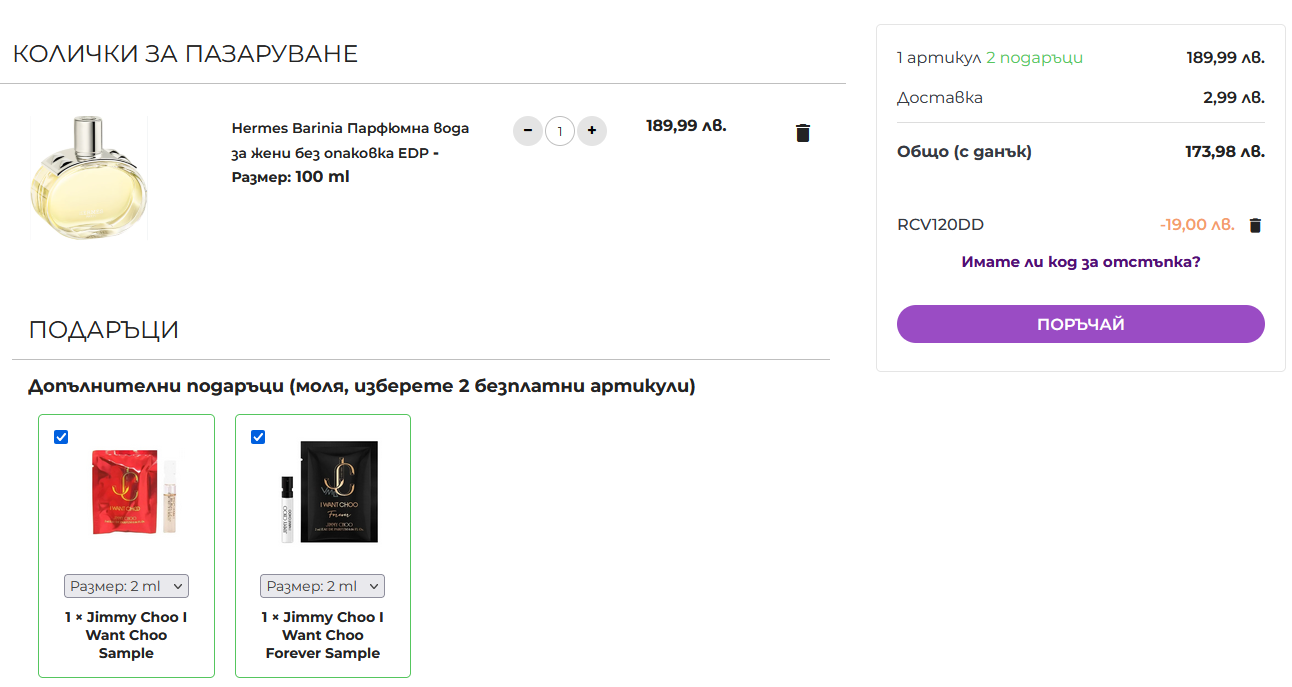 в parfium.bg вече добавят и подаръци, а иначе има още 4% (към 6 лв) кешбек в cashway