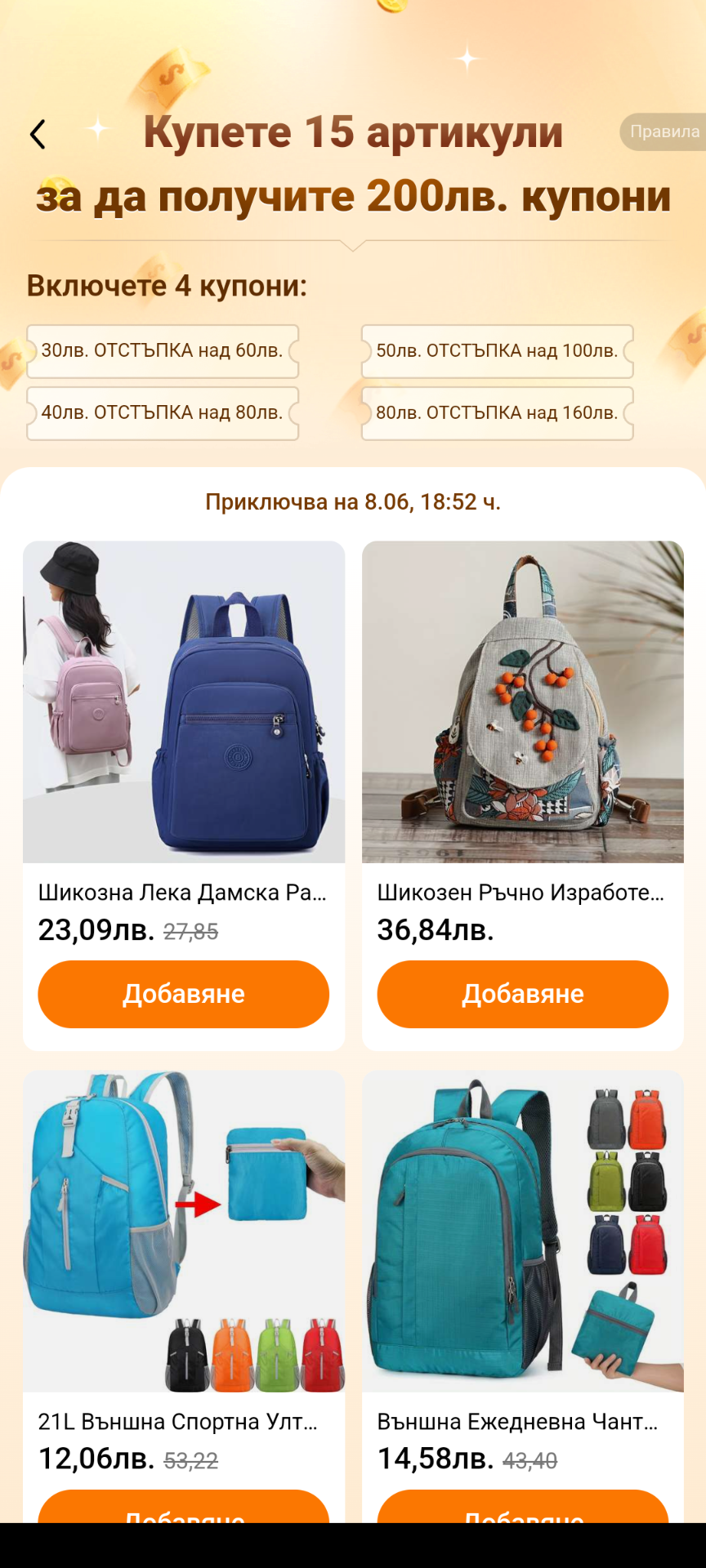 В единия профил ми предлага да купя 15 артикула и (уж) ще ми даде 50% купони