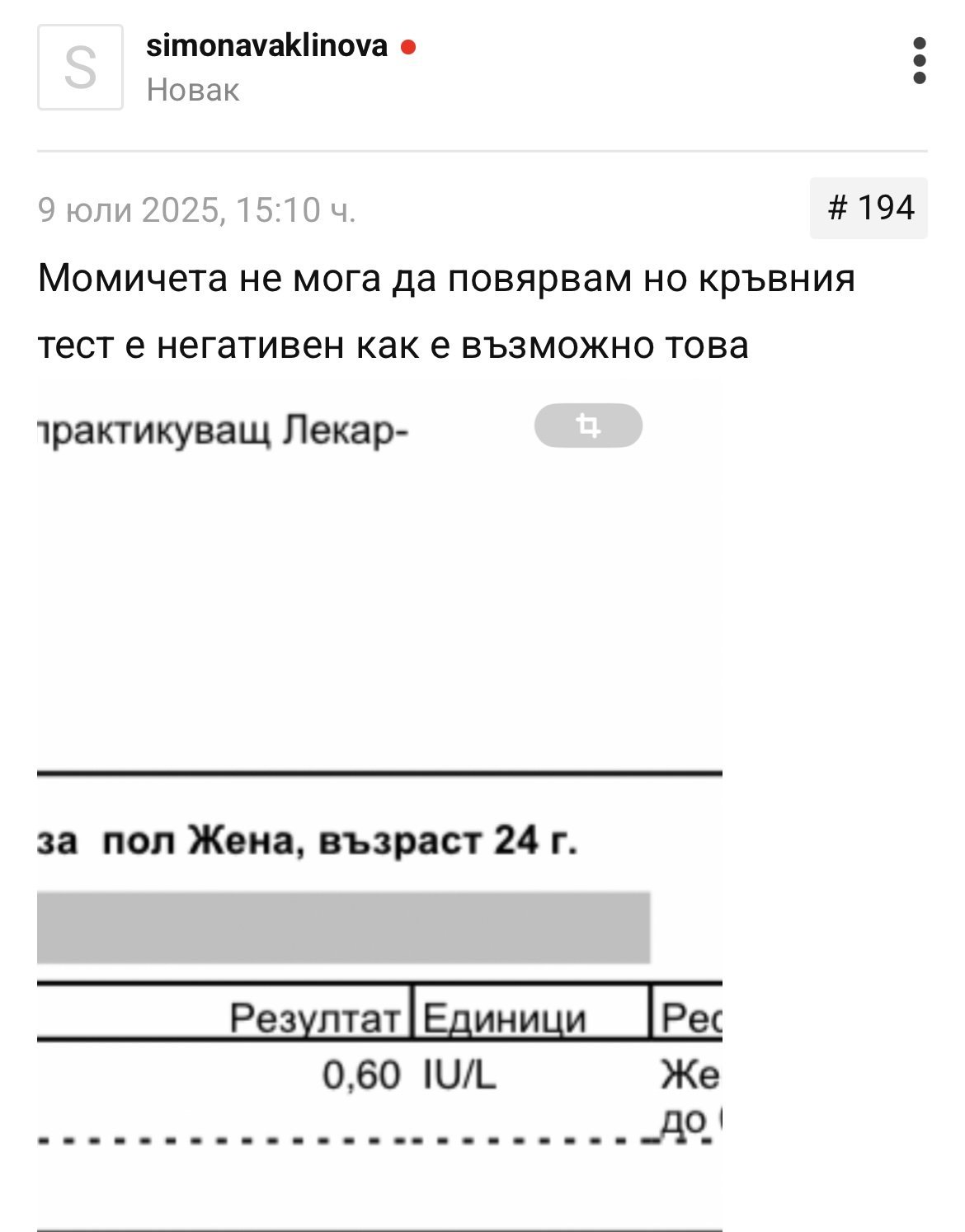 Нямаше ли на скоро една потребителка с отрицателен кръвен тест в една лаборатория, но положителен в друга? Имам такъв спомен.