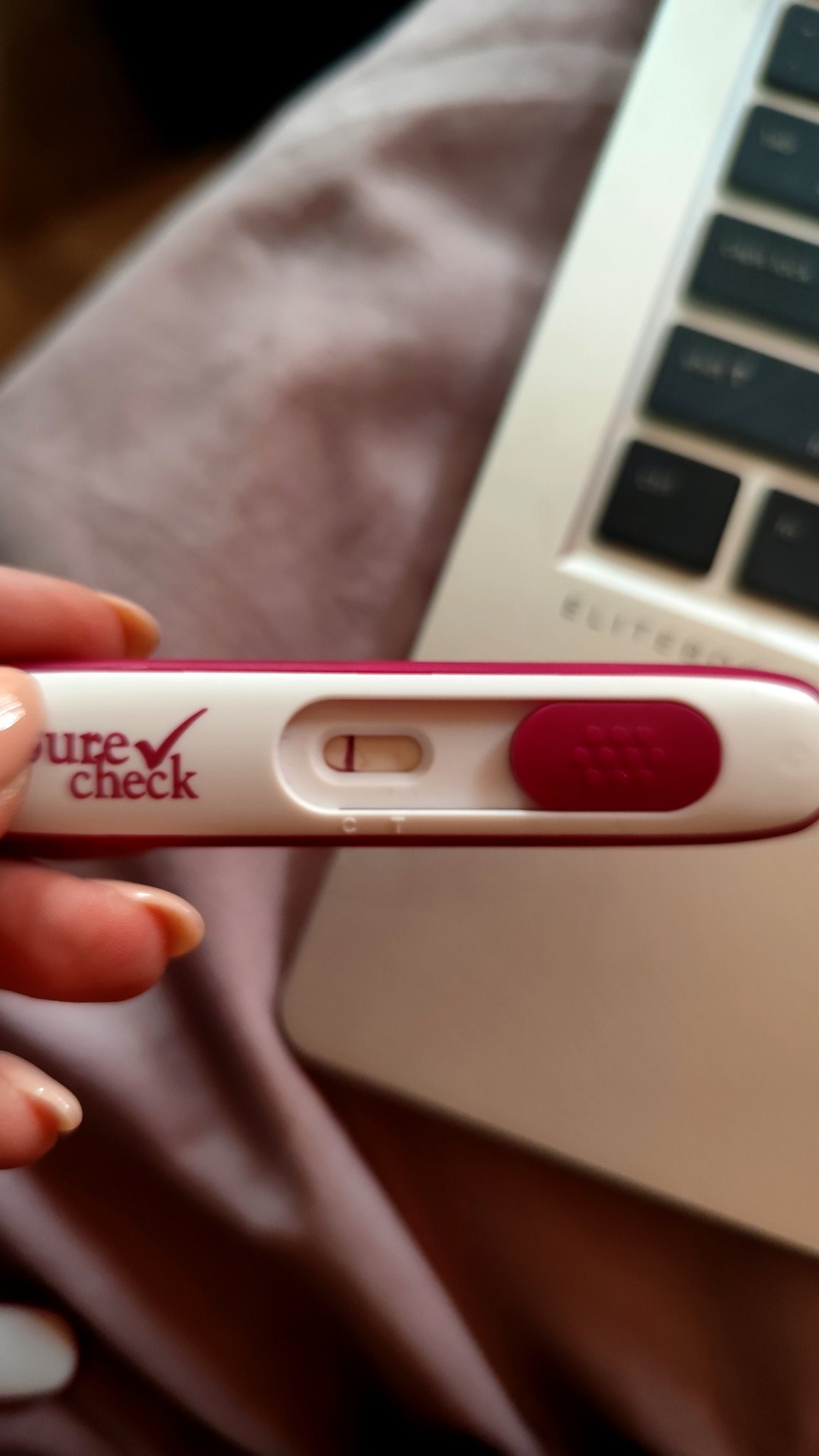 Здравейте! Последно имах МЦ от 18-22ри юли. До сега не си бях правила тест за ОВУ, та си направих на 31 юли вечерта и имаше две еднакви черти, контролната беше една идея по-тъмна от тази за овулацията. Не направих повече тестове след това. Направих отново на 6-ти август и тя изглеждаше така (в снимката долу), вероятно минала, но незнайно кога, дали на 1-2ри, дали на 4-5-ти. С приятеля ми започнахме да не се пазим от 4 август. Цикъла ми е точен, имам календар и винаги си идва на датата, та днес е датата и си направих 2 теста surecheck и presto. Не видях резултат, освен на Престо, до 5-тата минута доста бледа черта, но за Престо знаем. Та въпроса ми е разбира се ако не ми дойде днес, възможно ли е утре ако пак направя surecheck да излезе нещо ако съм бременна? На вас кога ви отчете положителния резултат?