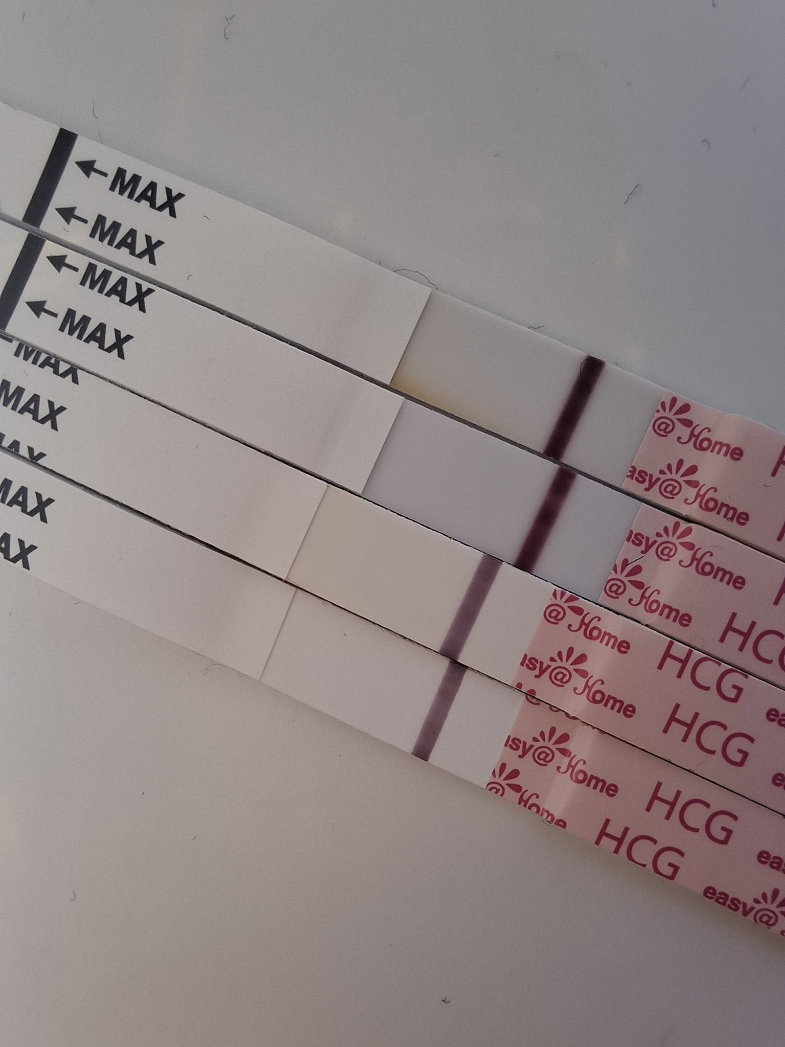 Здравейте, може и да съм луда, но все пак нека и някой друг да погледне. Имам два предишни спонтанни аборта - първия по неясни причини плода спря да се развива и се наложи кюретаж, 9 месеца по-късно отново забременях, но отново пак в 7ма седмица този път спонтанен аборт у дома, всичко се изчисти без лекарска намеса. Втория път беше заради нисък прогестерон, макар че приемах Дуфастон още от началото като разбрах около 5 седмица, се оказа че е бил в неправилна доза. Сега отново правим опити за бебе и трябва, ако има бременност да я хвана от рано, за да не стане като предишния път. Та вие виждате ли нещо на тези тестове? Последен цикъл на 07.06, овулация на 16.06. Най-горния е от тази сутрин.