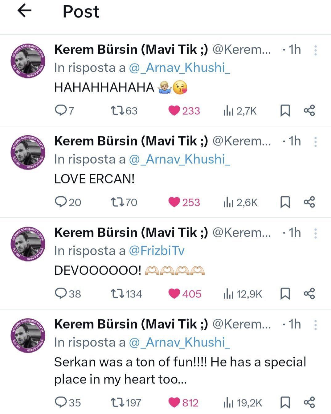 Керем Бюрсин беше активен в социалните мрежи днес, не само в Instagram, където сподели с нас 12-ата си тренировка, но и в социалната мрежа „X“, където се забавляваше, отговаряйки на публикации. 🇪🇦🇹🇷