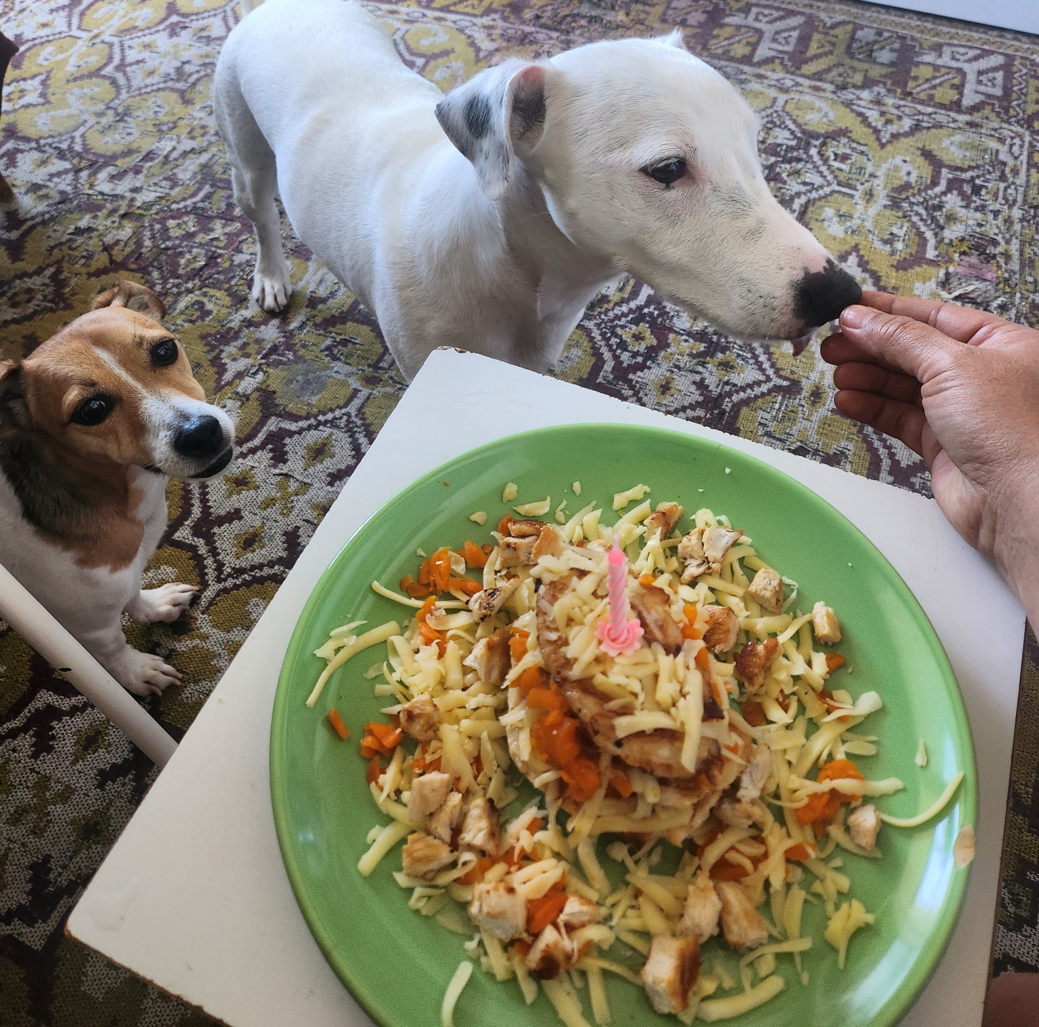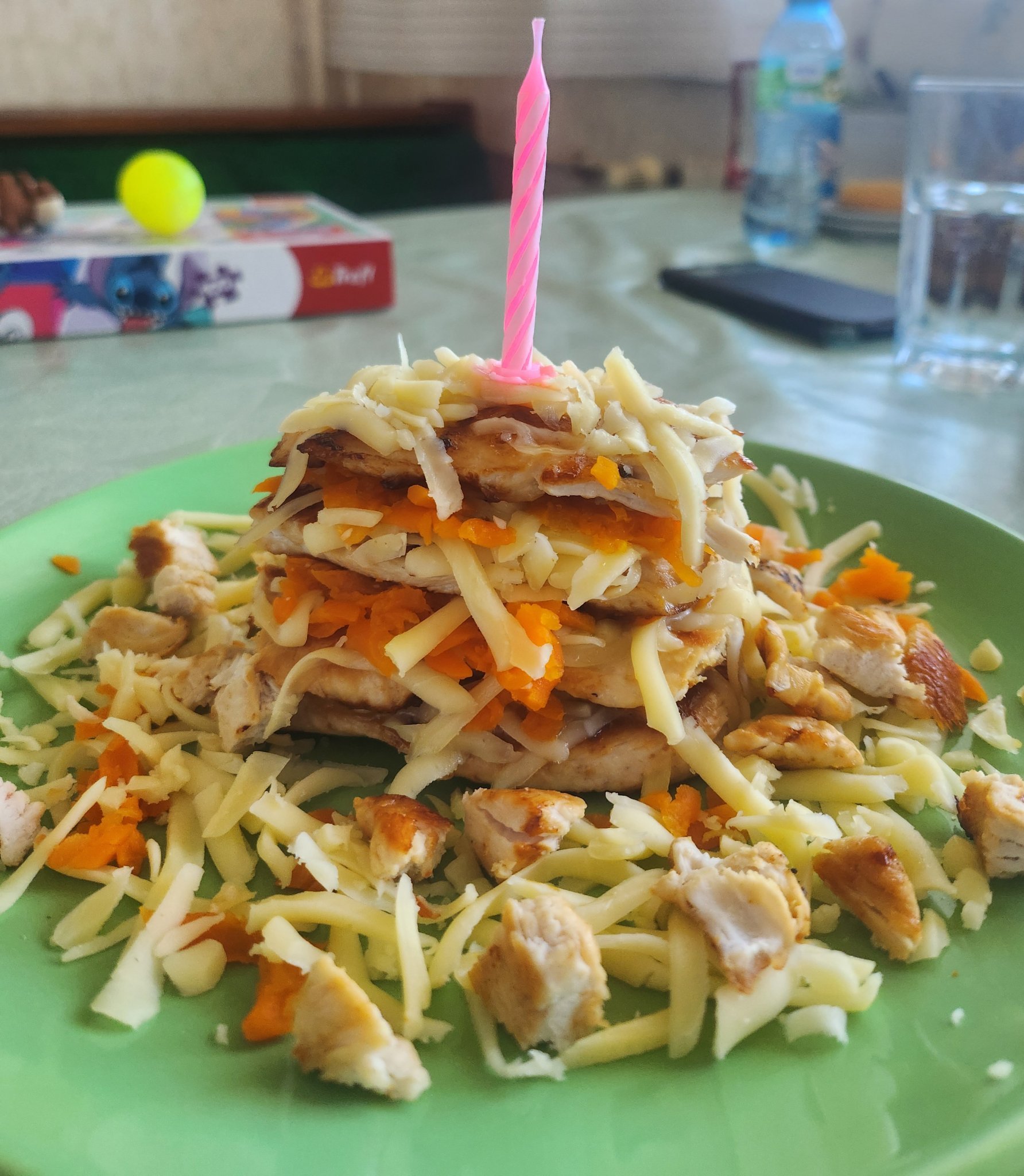 Ей това пръци (един от прякорите й) днес става на 6 годинки. Довечера ще правя торта от пилешко филе, кашкавал и морков, че нали е топло, нещо по-лекичко. 🤣