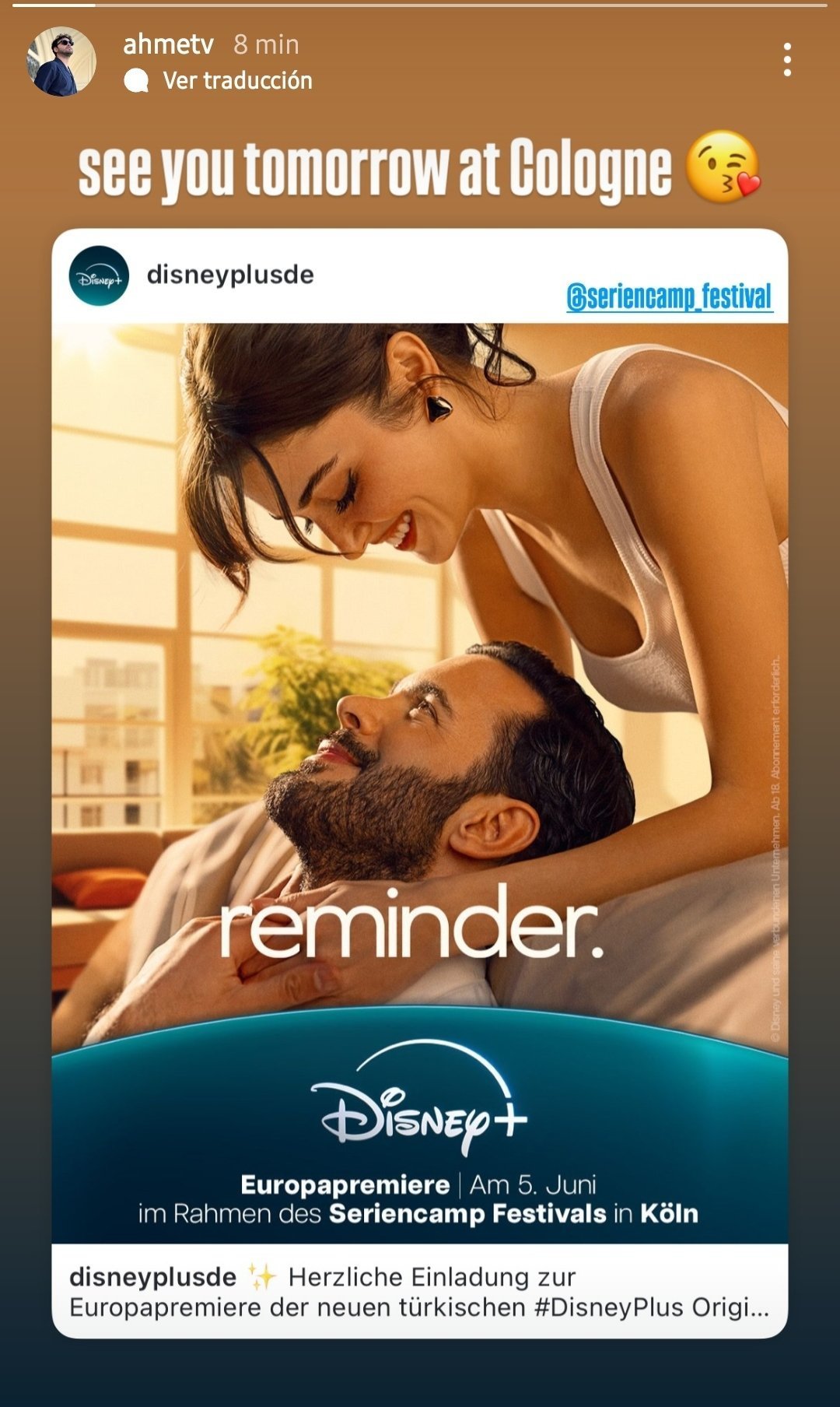 Ханде Ерчел и Баръш Ардуч летят за Германия сутринта, за да присъстват на премиерата в Кьолн на сериала "Aşkı Hatırla", в който играят главните роли. Дуетът, който получи голямо признание за хармонията си и се разбира отлично, ще присъства на събитието, което ще се проведе в Cinedom Mediapark вечерта, и ще даде интервю.