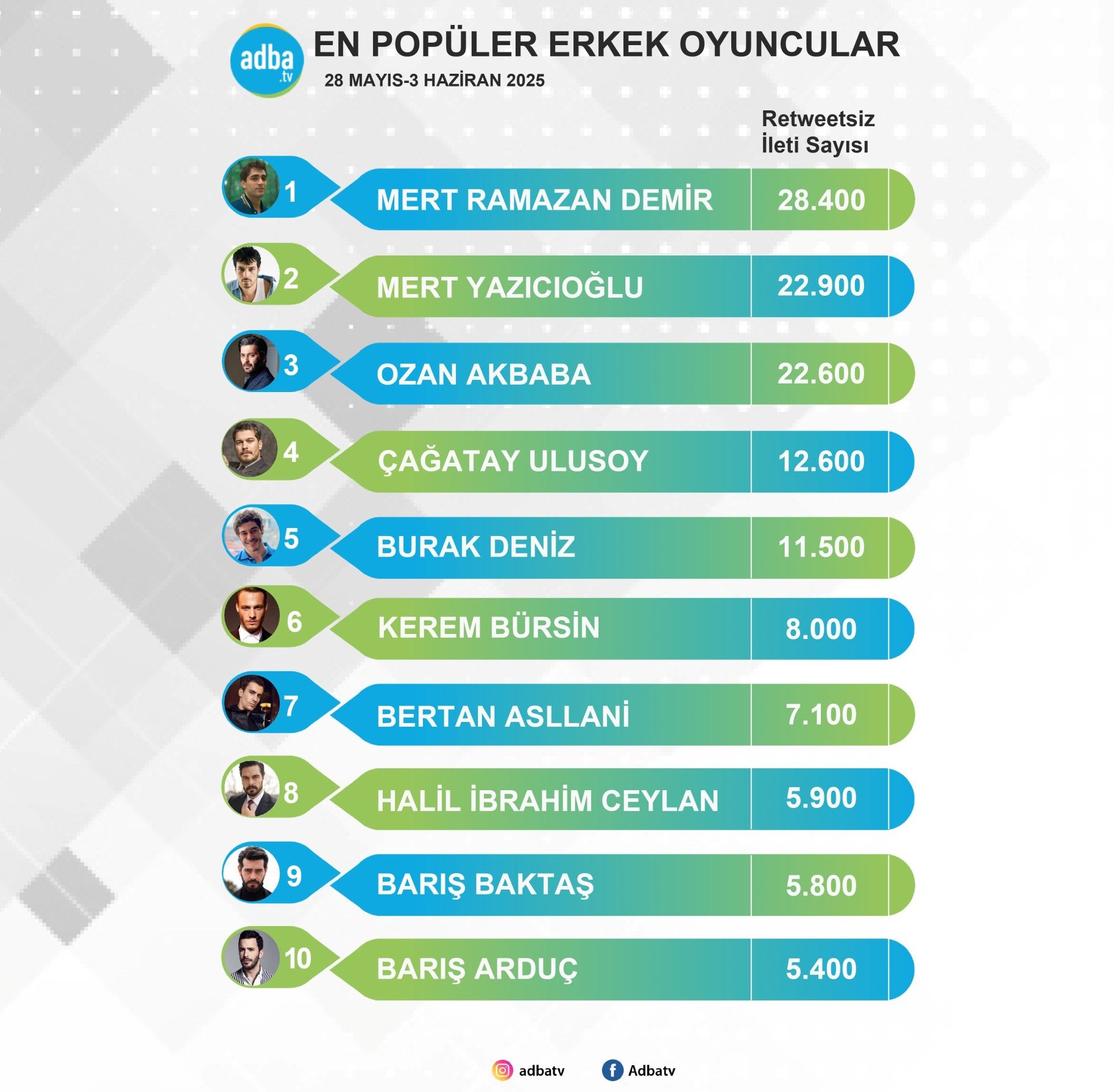 Адба обяви кои са най-популярните актьори на екрана за периода 28 май - 3 юни. Тази седмица Керем е на 6-та позиция Simple Smile