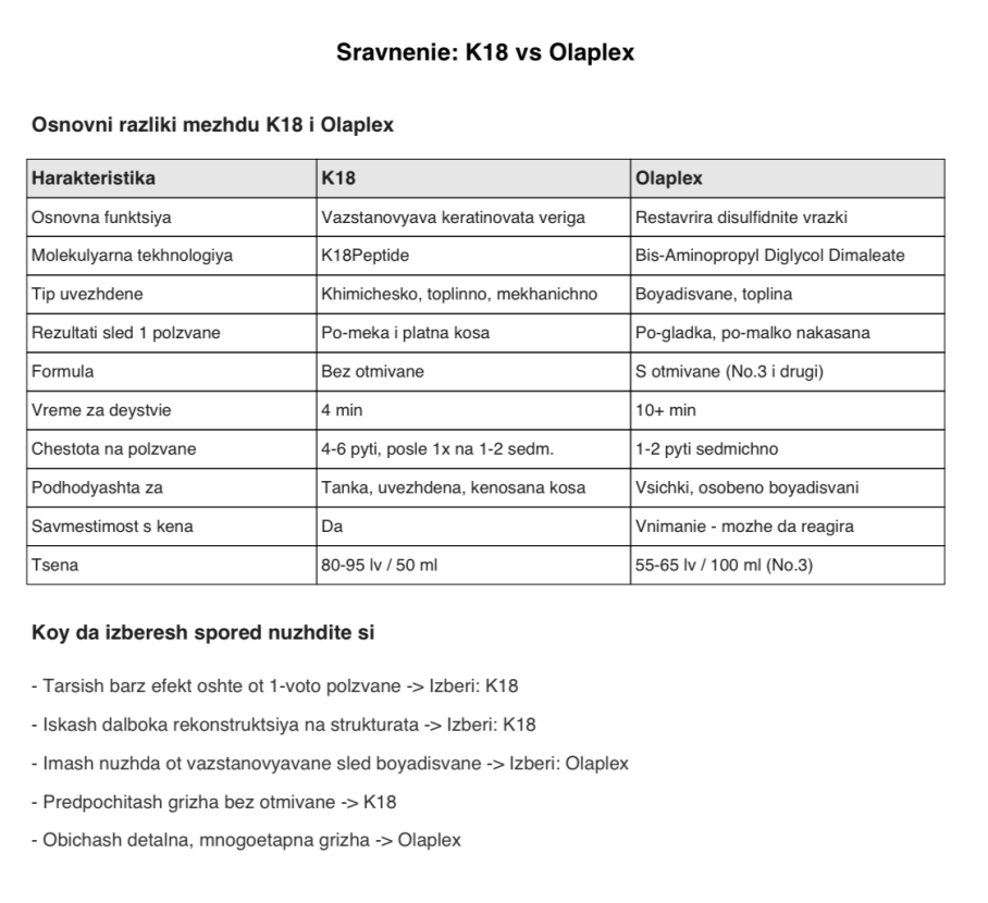 Но питах приятелка в Испания, фризьорка е и там каза, че ползват олаплекс като терапия, не е чувала за к18. Аз от тик ток разбрах😀 и като видях цената първоначално много се бях отказала, накрая взех комплекта и още от първото ползване имаше разлика.