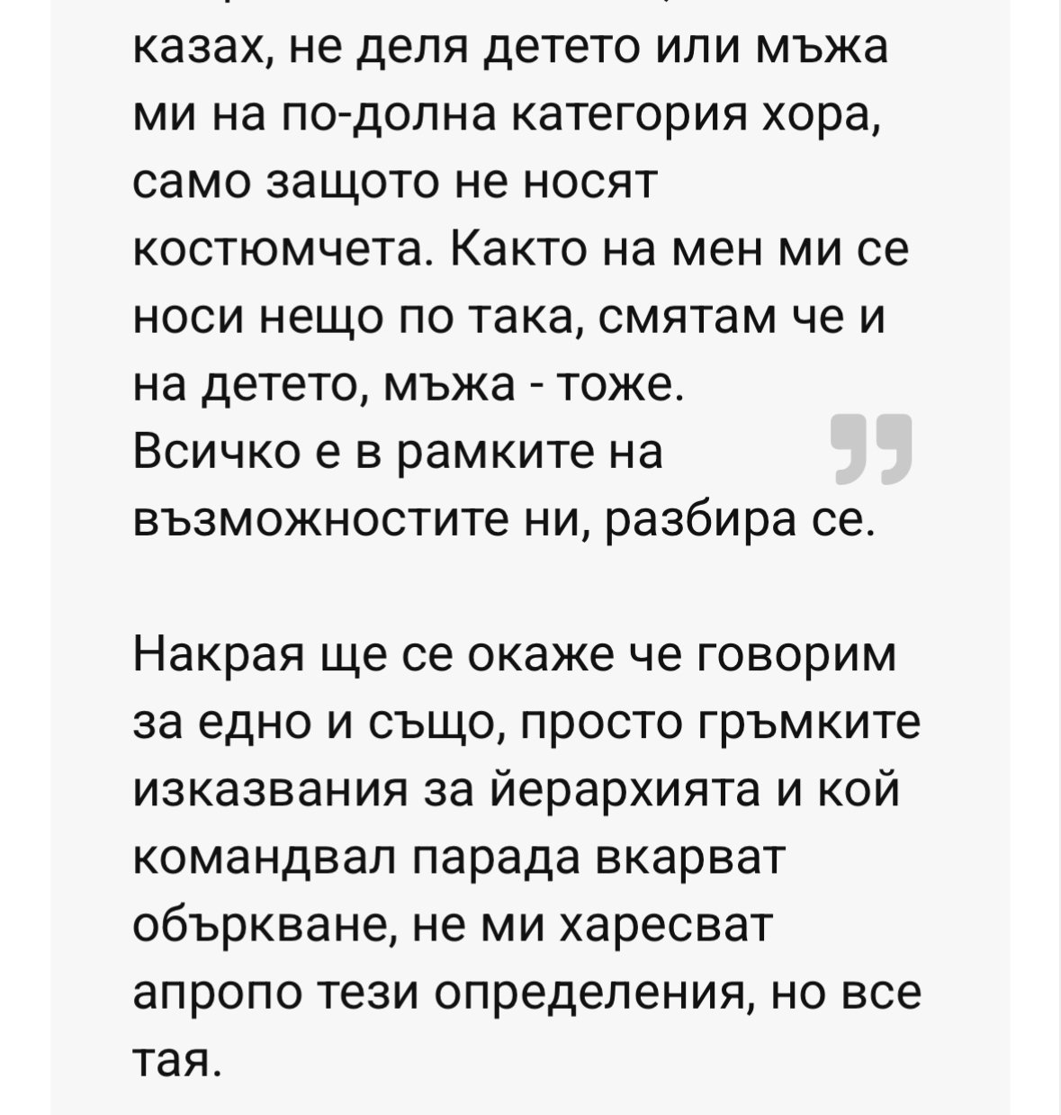 Накрая ще се окаже че говорим за едно и също, просто гръмките изказвания за йерархията и кой командвал парада вкарват объркване, не ми харесват апропо тези определения, но все тая.