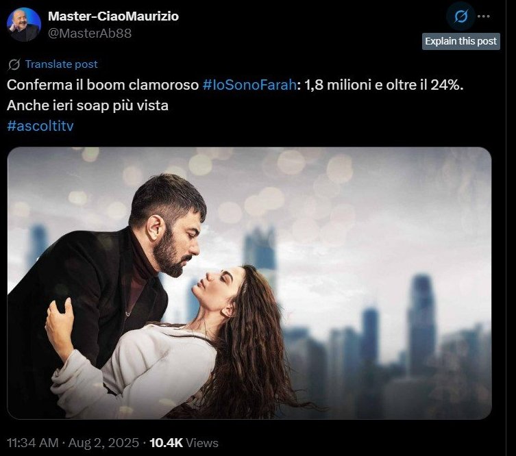 Потвърждаваме зашеметяващия бум на сериала Io Sono Farah: 1,8 милиона и повече от 24%. Вчера това беше най-гледания сериал.