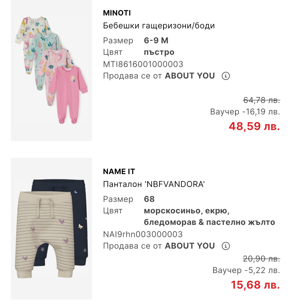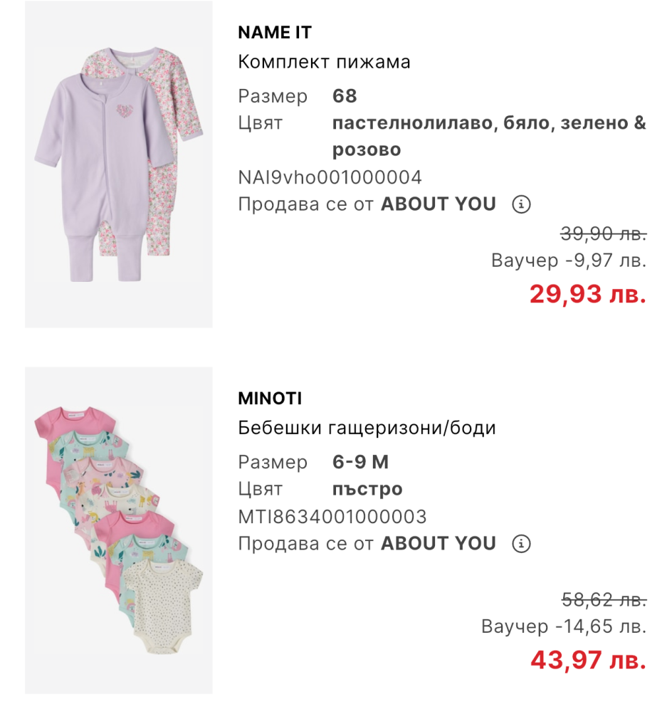 Харесвам Name it. Не се свиват и не избледняват след пране и сушене в сушилня. На Minoti за пръв път поръчвам, но изглеждат също хубави. Лошото е, че съм спала, че техните пижами са с копчета, а с цип е много по-удобно.