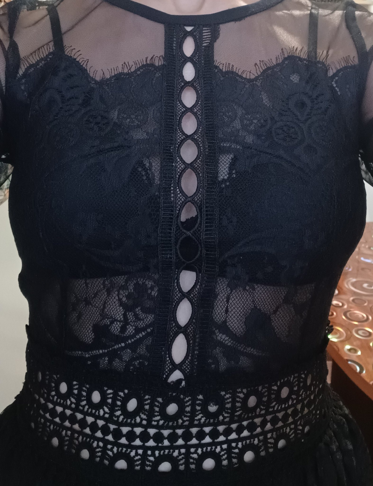От онзи ден една черна дантена рокля, която първо видях, че една жена взе и харесах. Чаках я не знам колко време да пробва всичко, което беше взела. Обикалях като луда, но търпението ми се възвагради. Остави я на щанда за върнати и пробвани дрехи, а аз веднага я грабнах. От Хуманата за 4 евро. Предстои ми основно излизане по детските площадки, но все ще намеря къде да я нося.