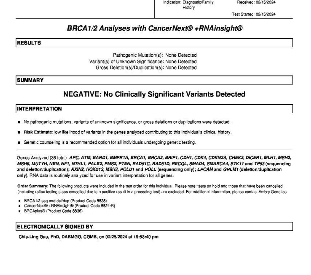 При нас излязоха генетичните BRCA2 е прецакан както си и мислехме че един от 2та ще е проблемен. Засега заради изминалата една година на Верзенио плана според лекаря е да не се прави нищо а да си продължим с Золадекса, Летрозола и Верзениото за оставащата още една година. Едва тогава да се обсъдят последващи операции. Но другия месец и в София ще отидем на консултация