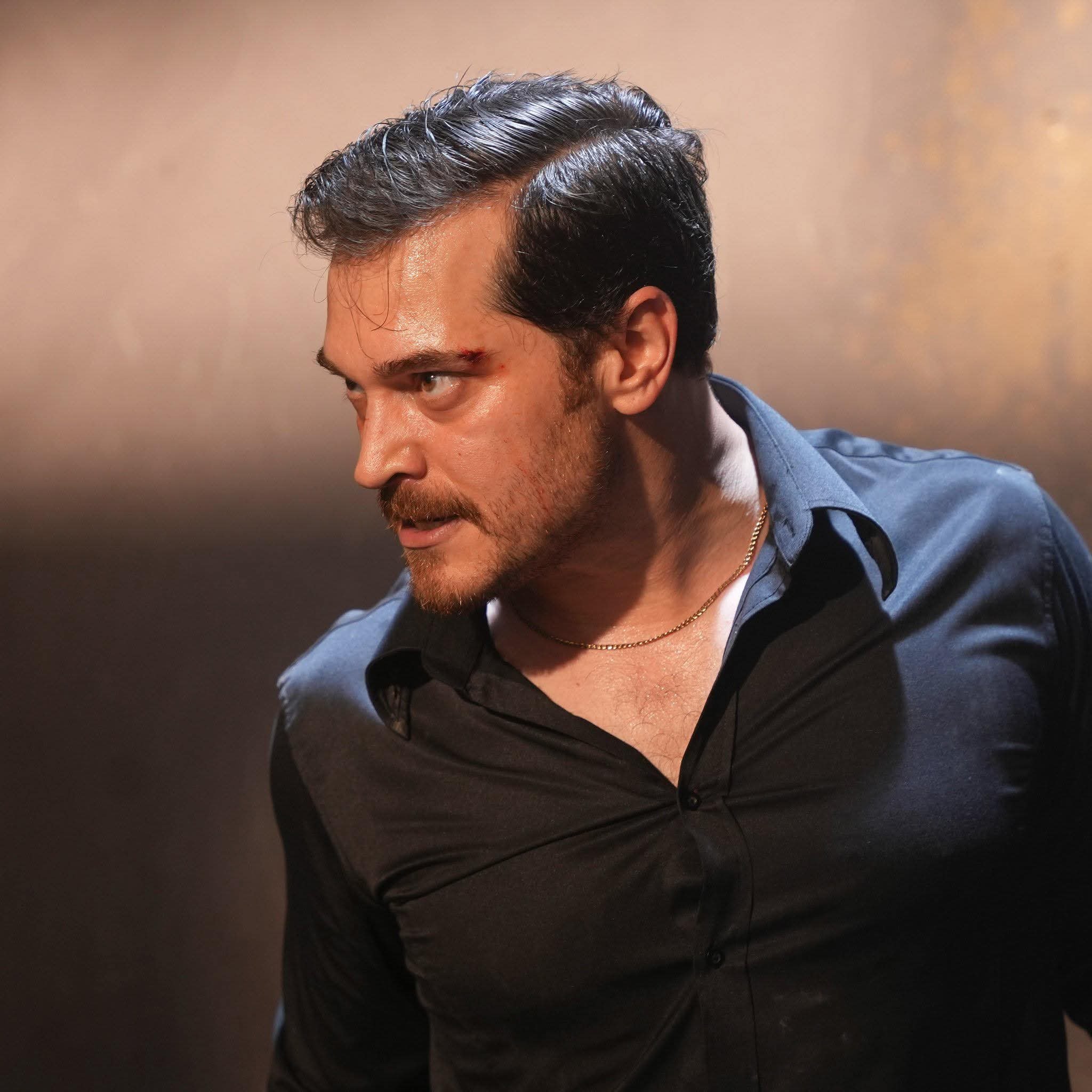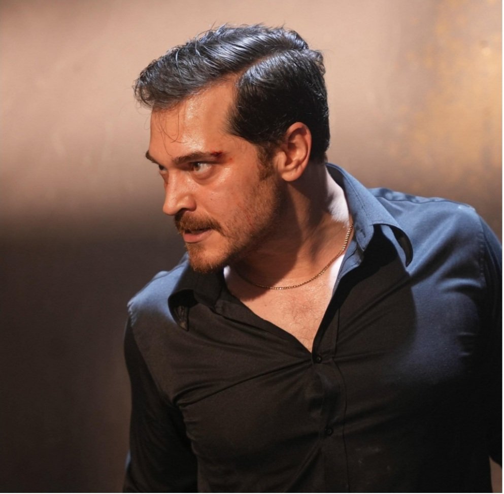 Погледът му е решителен, опасен, на ръба между болка и ярост. Това не е просто мъж, това е човек, който няма какво да губи... и точно затова е най-опасен.