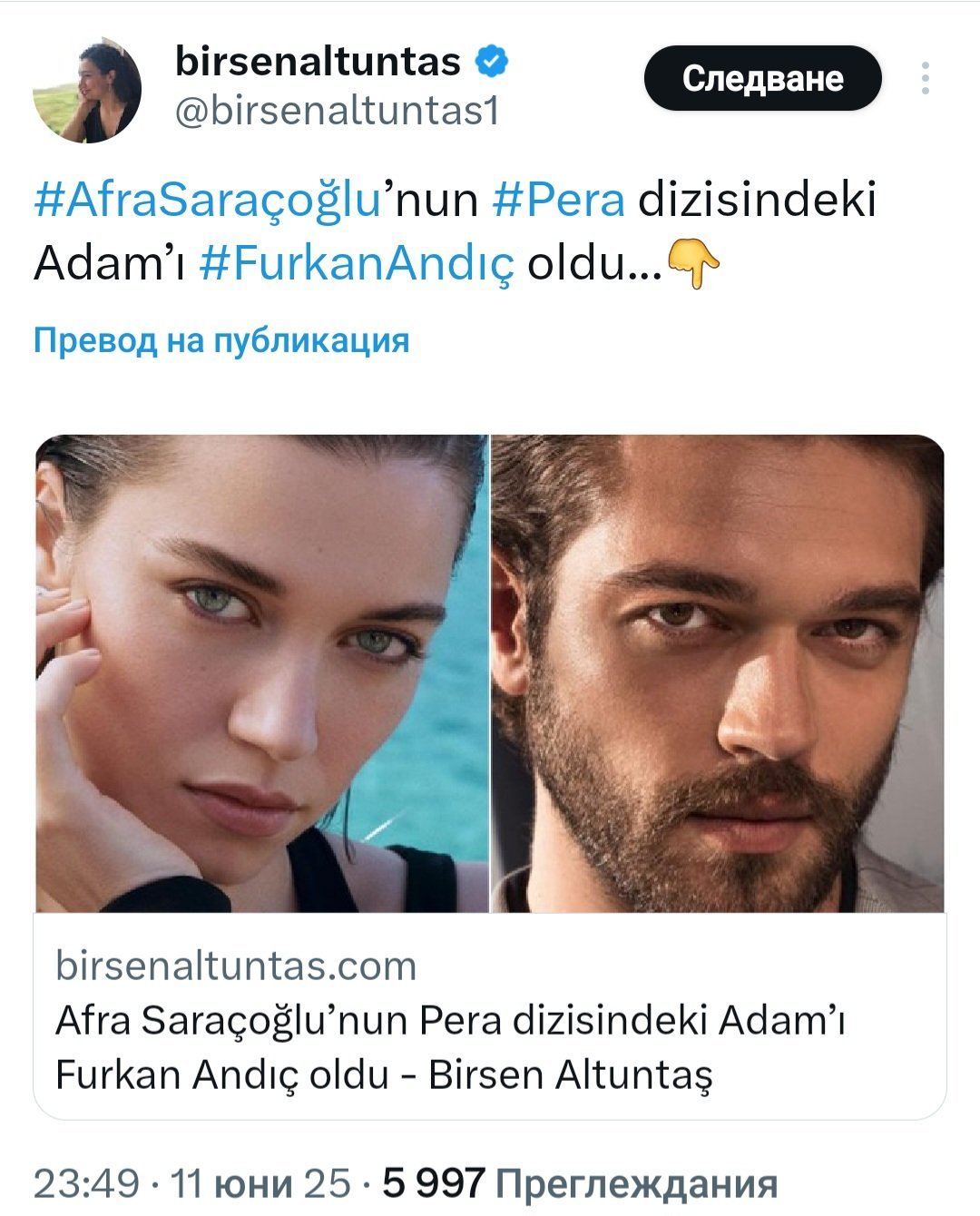 Партньор на Афра в "Пера" ще бъде Фуркан Андъч.