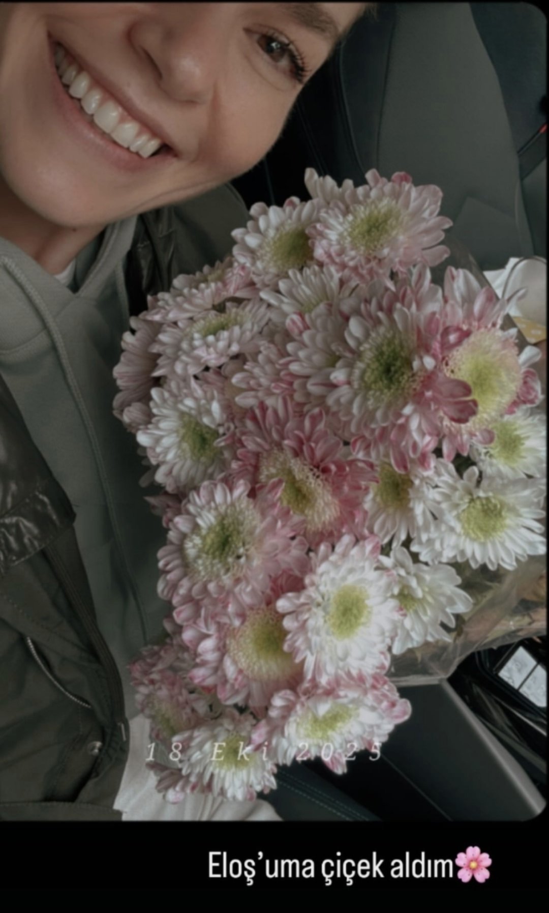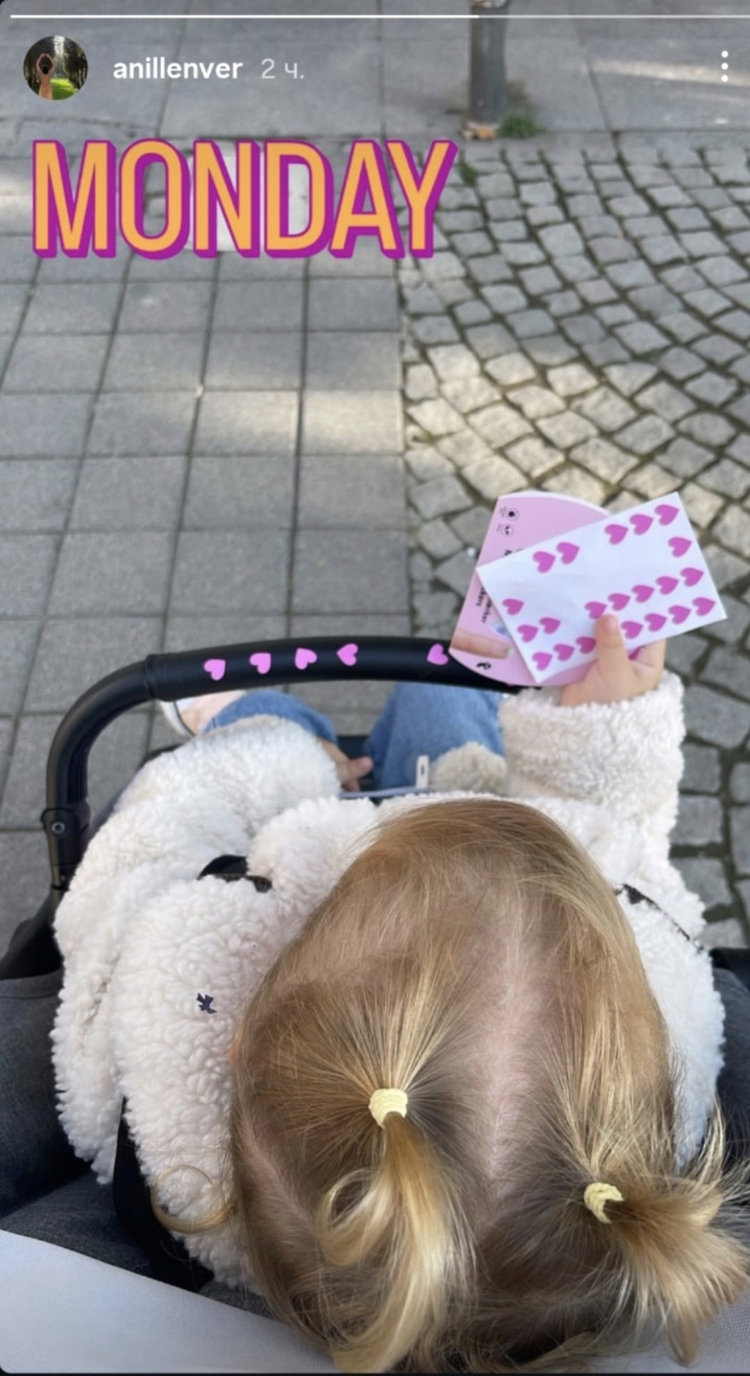 Аслъ пише, че малката Елош е уморена от работа. Тя е на гости на майка си на снимачната площадка.