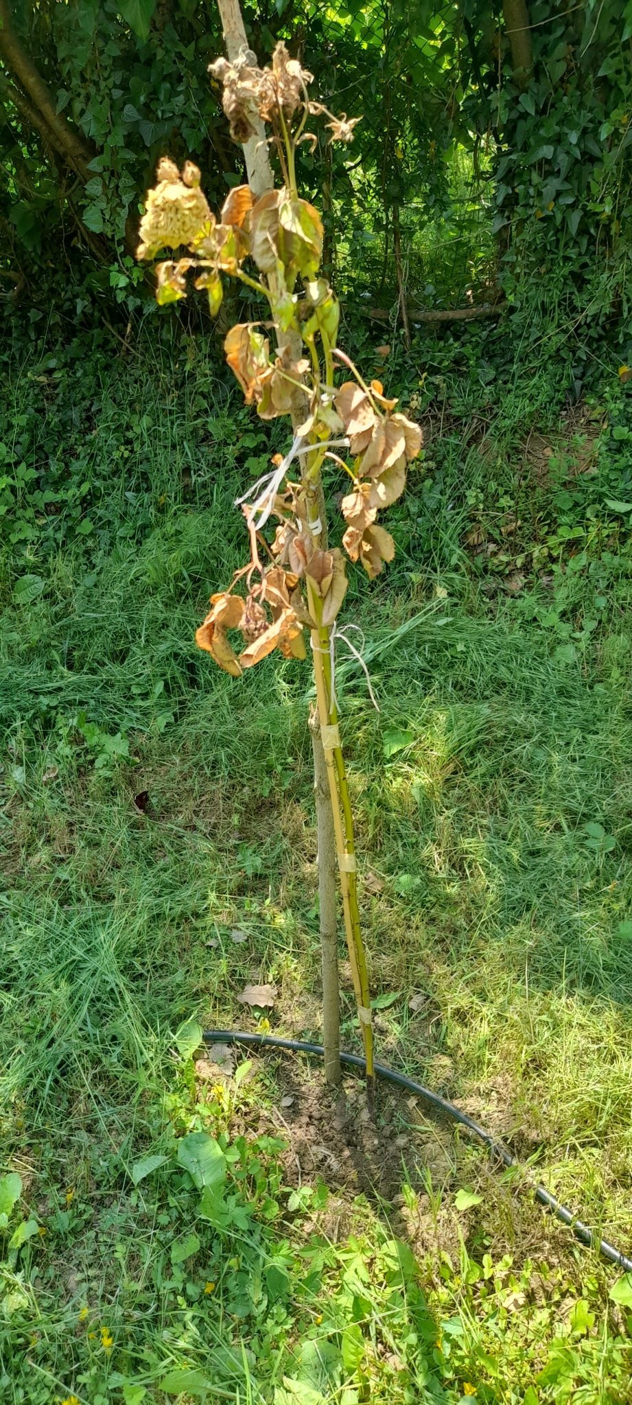 Странното е, че стеблото нагоре е поизбледняло на цвят, но все още държи накакъв. Най-долу и короната са абсолютно заминали