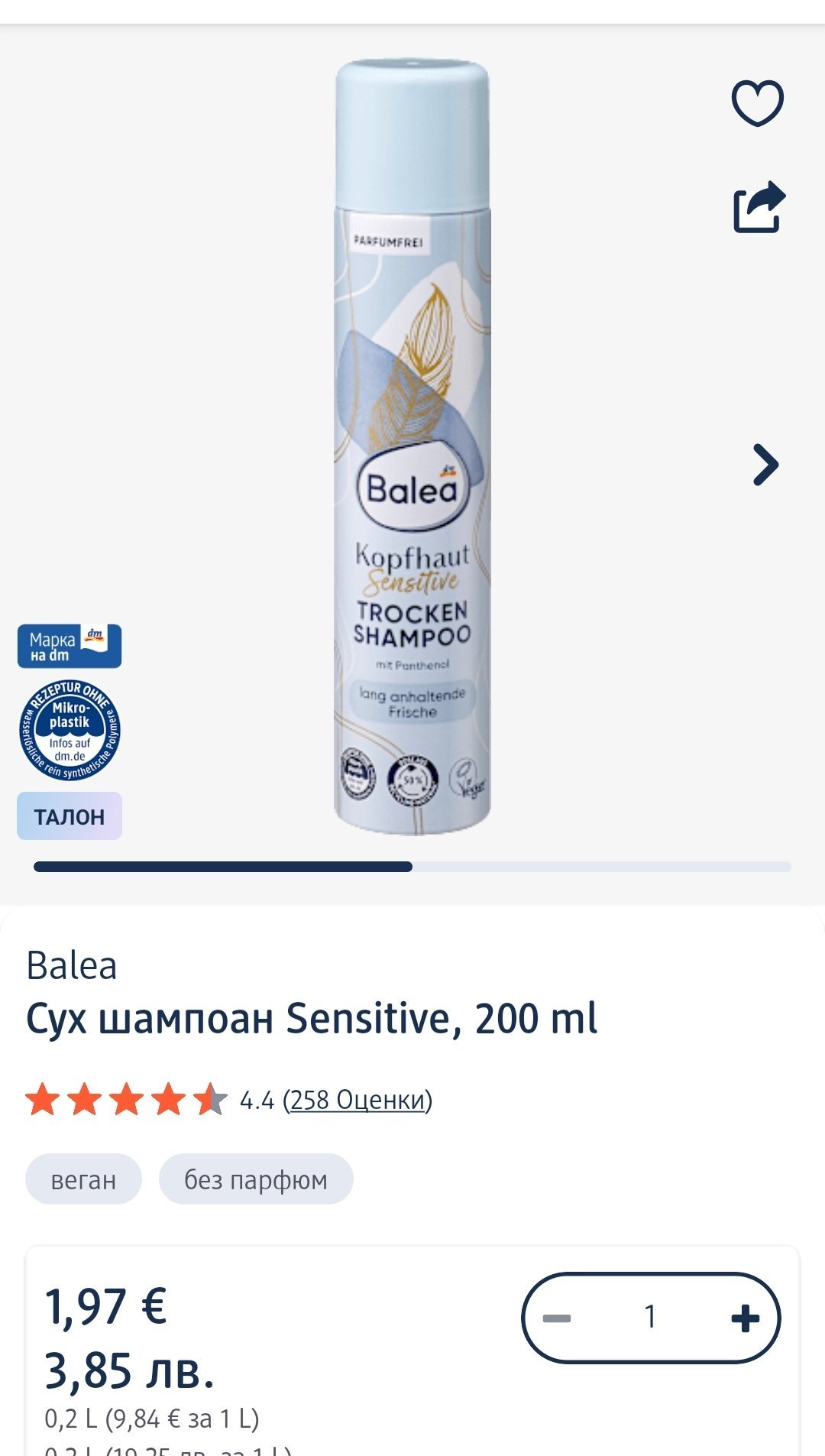 Аз съм доволна от сухите шампоани на Balea. Ползвам ги рядко, но не съм имала гаф. Пробвала съм почти всички, но най любими са ми 2 вида.