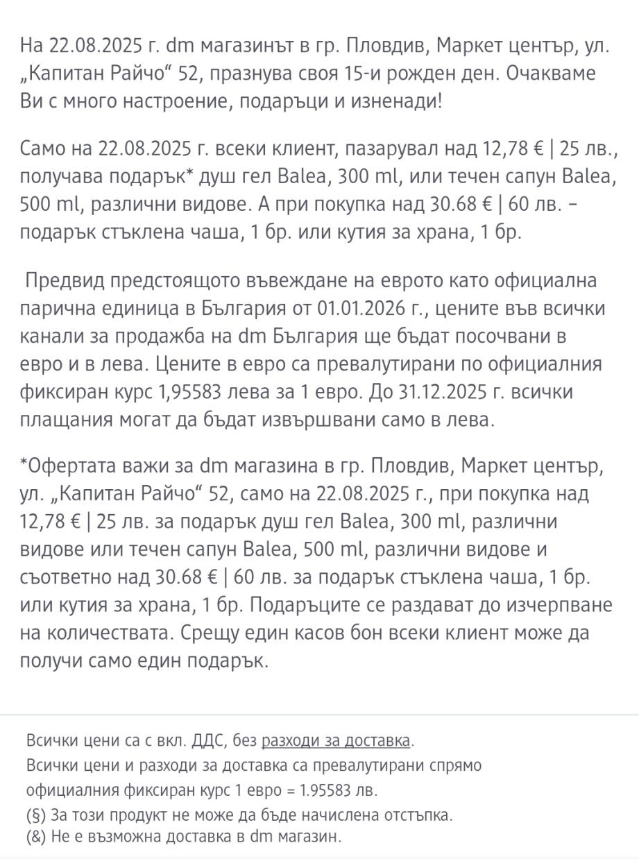 Може да се съчетае талон за отстъпка на цялата покупка и талон за определена марка. Няма как един път талон на Алверде и после талон за марка на ДМ.