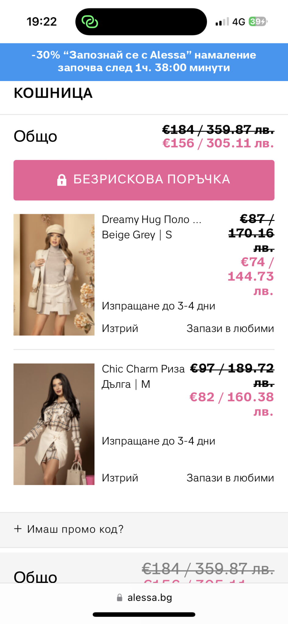 Кога ще е намалението? Сложила съм 2-3 неща в кошницата и се чудя да чакам ли.
