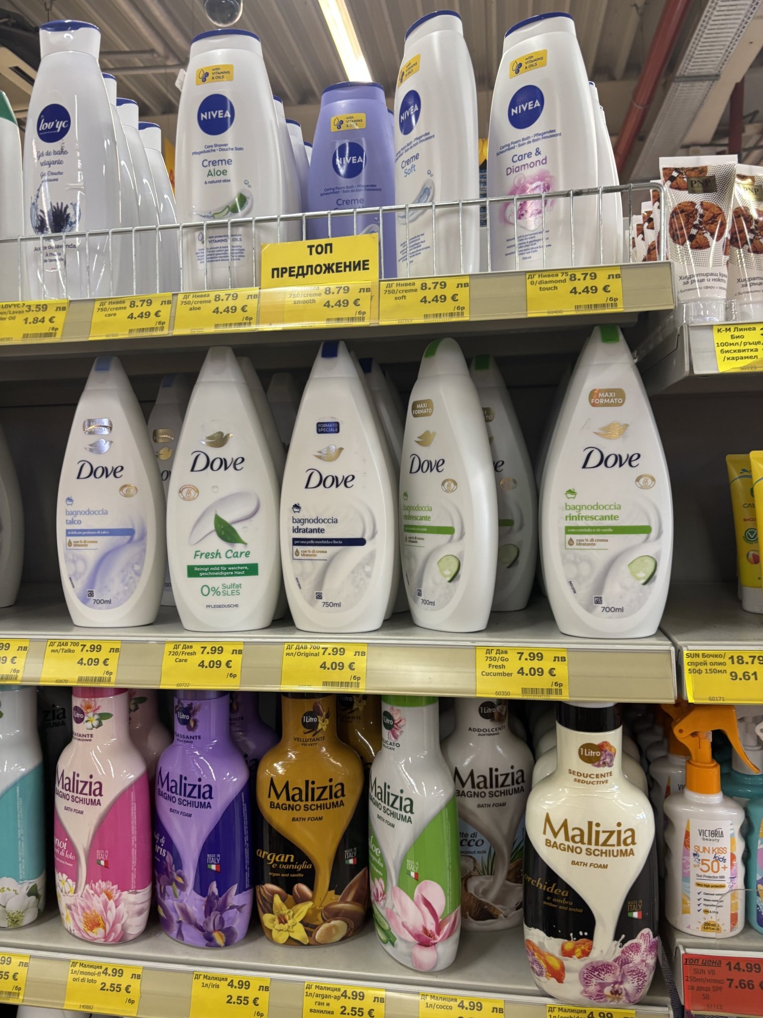 Намерих си шампоан и балсам на 0.88 цента бройката, а в дрогериите са по 5.99 €. Имаше подобна марка на някаква българка, но не помня точно как се казва.