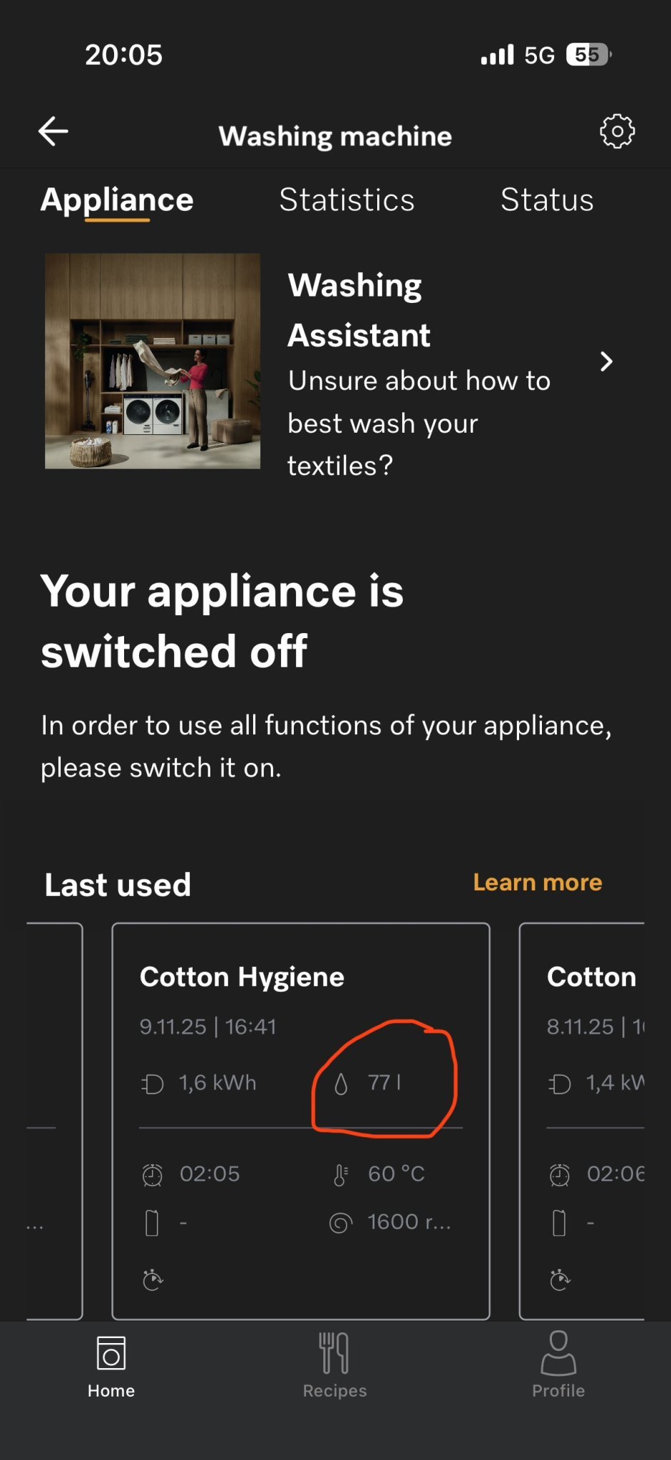 Ето потреблението за последното ми пране. Програмата е памук, около 6 кг:
