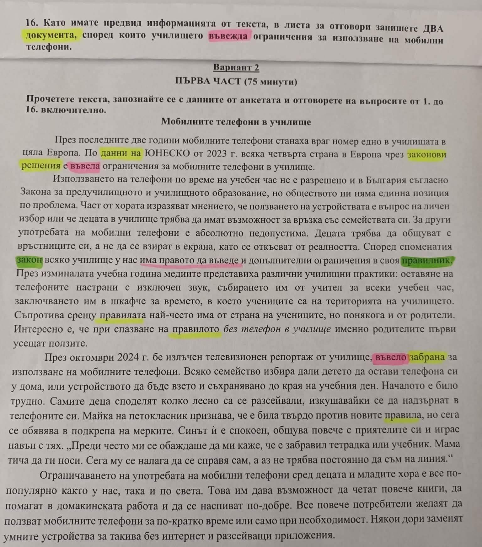По темата за 16 въпрос. Намерих това в нета. Общо взето това е точно въпрос за отсяване.  Моята не се е справила. Но то си го пише в текста. Просто е труден и не всички деца са го открили.