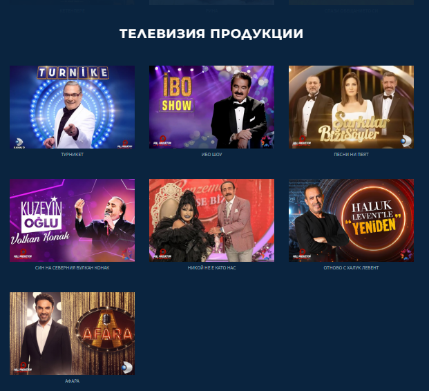 В каталога на фирмата  има и тв предавания с известни певци , също и мюзикъли.