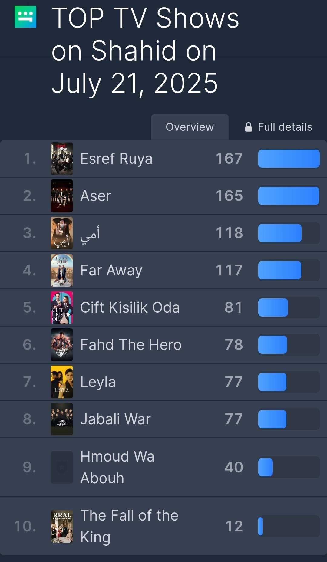Eşref Rüya се класира на 1️⃣ в ТОП най-популярните телевизионни предавания на @ShahidVOD