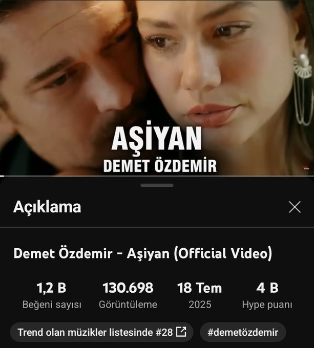 Още едно видео на Демет Йоздемир Aşiyan навлезе в музикалните тенденции в YouTube. Минаха седмици от финала на сезона на сериала и въпреки че песента постоянно е премахвана и блокирана, не е изчезнала от списъка с тенденции. Колко е страхотно това? 👑