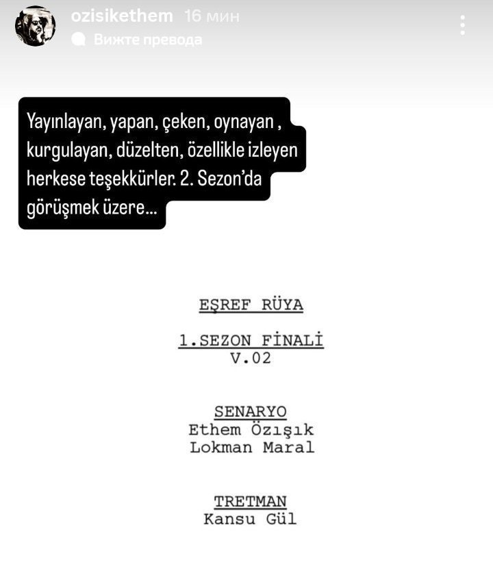 Не ни остава нищо друго освен да си пожелаем един достоен за финал на сезона епизод на „Eşref Rüya“.