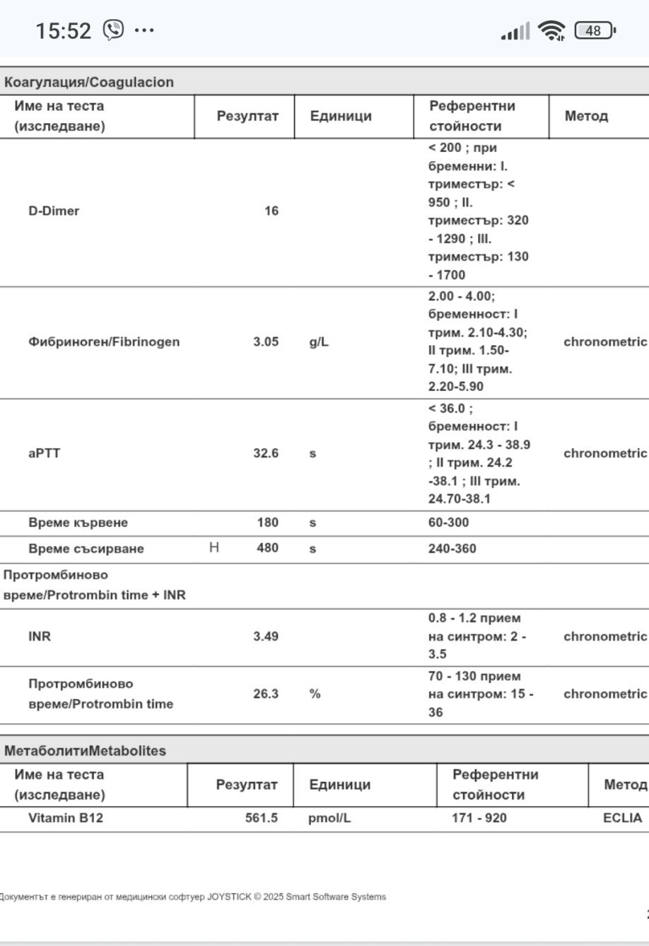 Здравейте, момичета! Аз съм с нискорискуви мутации и не съм на терапия. Бременна  съм в 16 седмица. Съгласувала съм с хематолог и на 4 седмици си проверявам коагулацията. Вчера бях на преглед и превантивно почнах по 1 таблетка натаспин на ден. Днес ми излязоха резултатите и ми е притеснено, че Аптт ми е доста високо-38.7 s.От 1 месец пускам коагулация и до сега ми е било 31,56 най-много. А предния месец 30.31.Знам, че е по-притеснително да е под нормата, но пак се тревожа. Иначе до 42 е в лабораторията. Но видях в таблицата за втори триместър, че 38.1 е максимума. Фибриногенът ми е добре. Д-Димер е малко завишен, но е в норма. С натаспин ще падне. Миналата година за 2 седмици спадна.