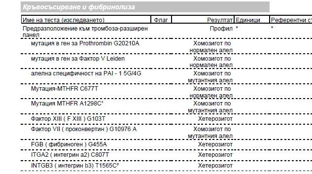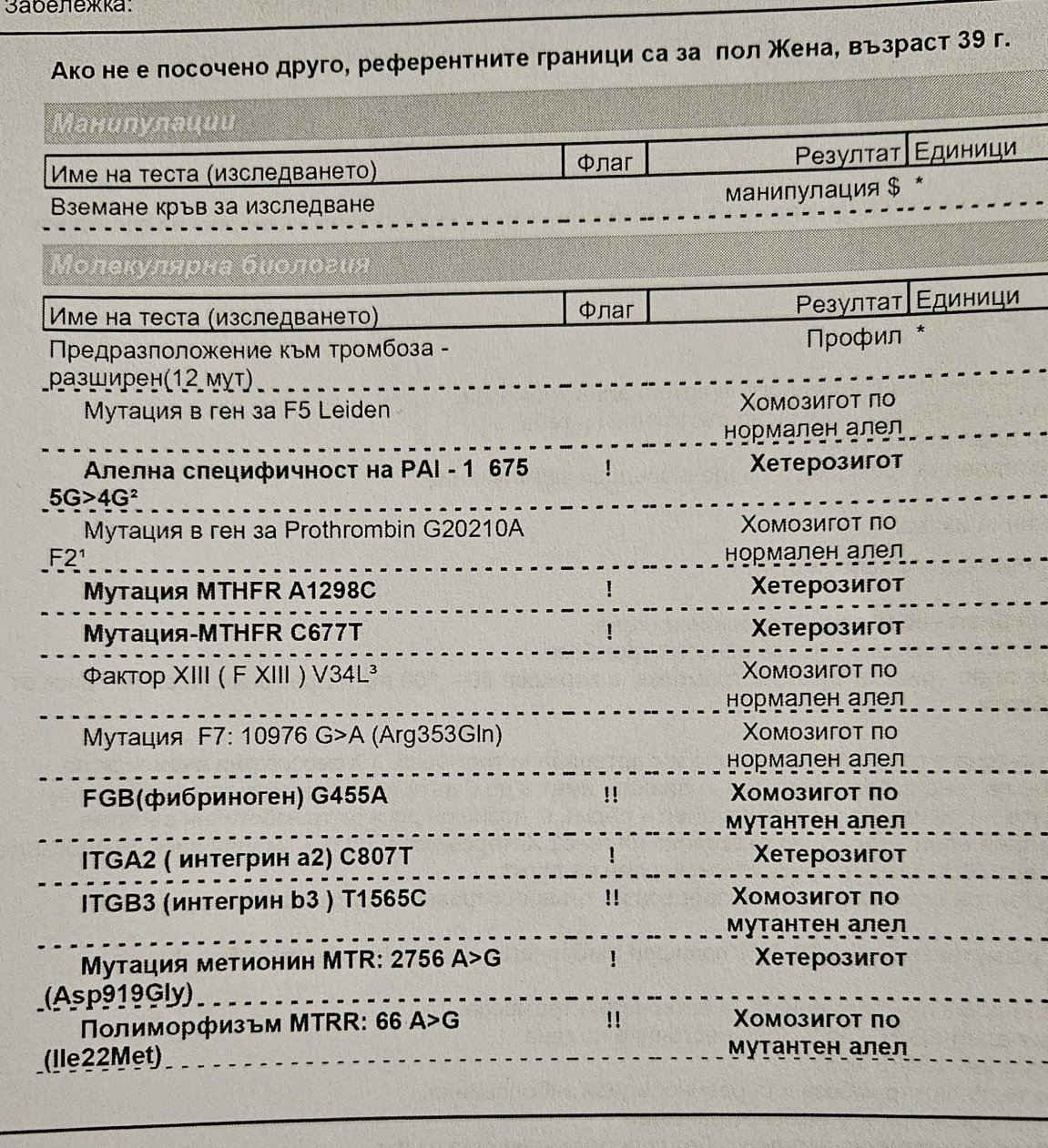 Здравейте! Прилагам резултатите ми от изследване за тромбофилия.