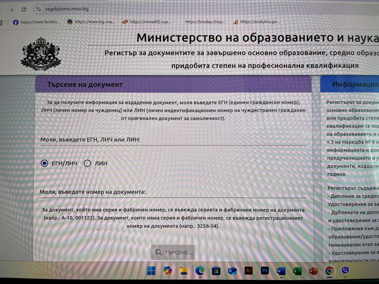 Имайте предвид, че в регистъра буквите от серията трябва да се въвеждат на кирилица. При моя син е С-25. Предполагам, че ще е така за целия набор - средно образование 2025г. Ако се въведе С на латиница, системата не открива документа... Изобщо... Нямам думи. Не знам, ако някой чужд университет реши да си прави справка в нашия регистър. Единствено ще установи, че такава диплома не съществува.