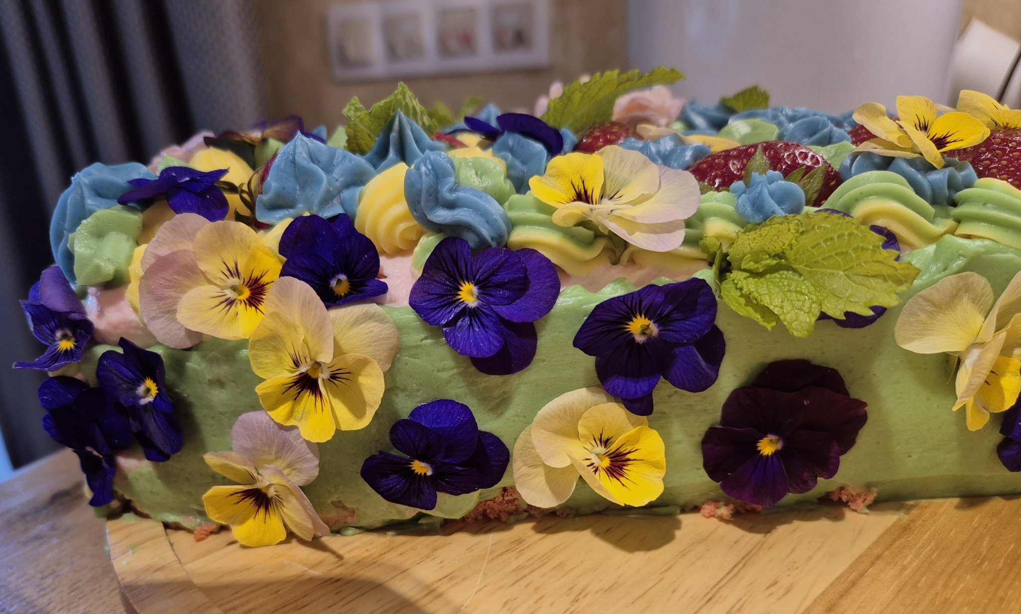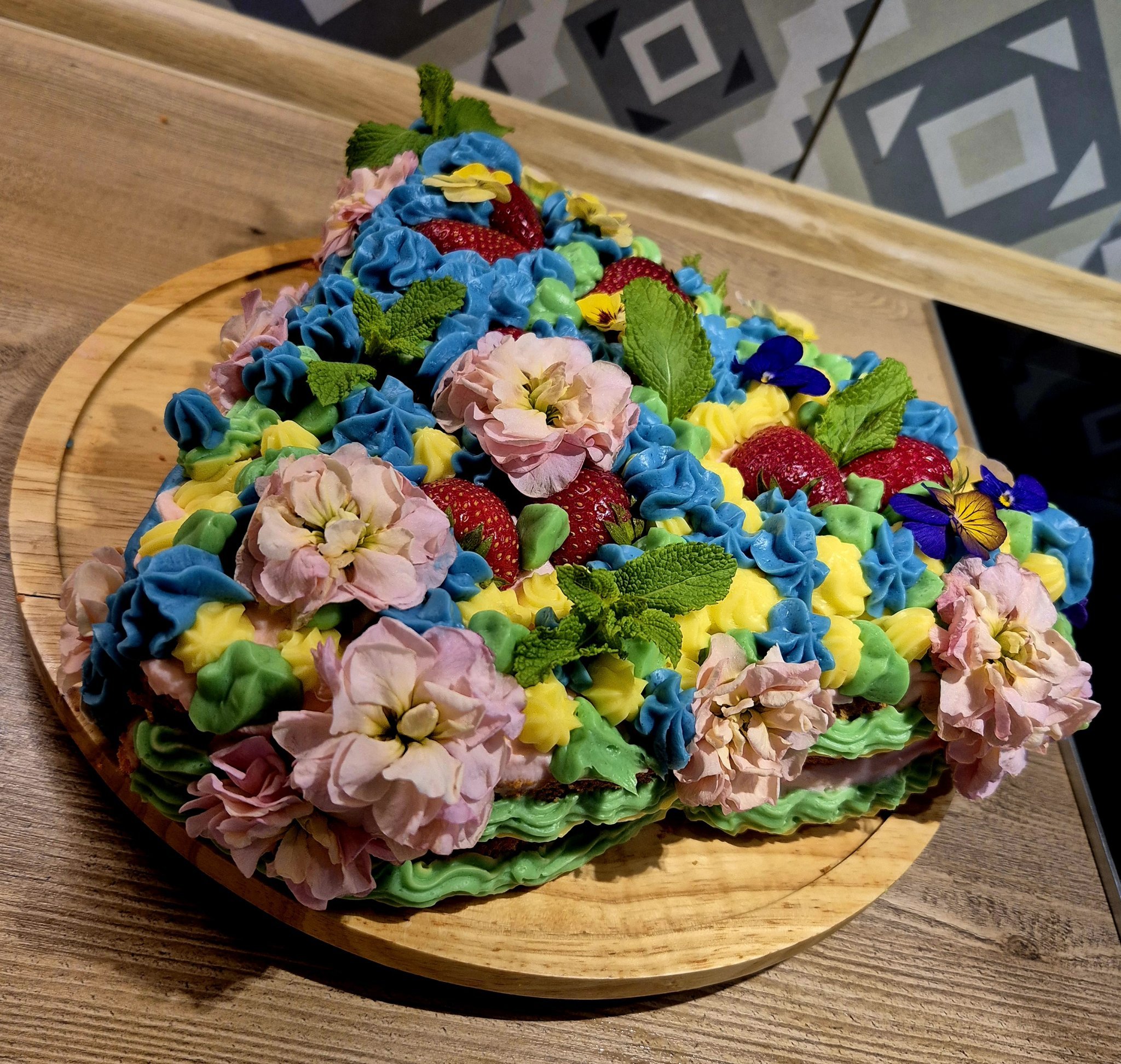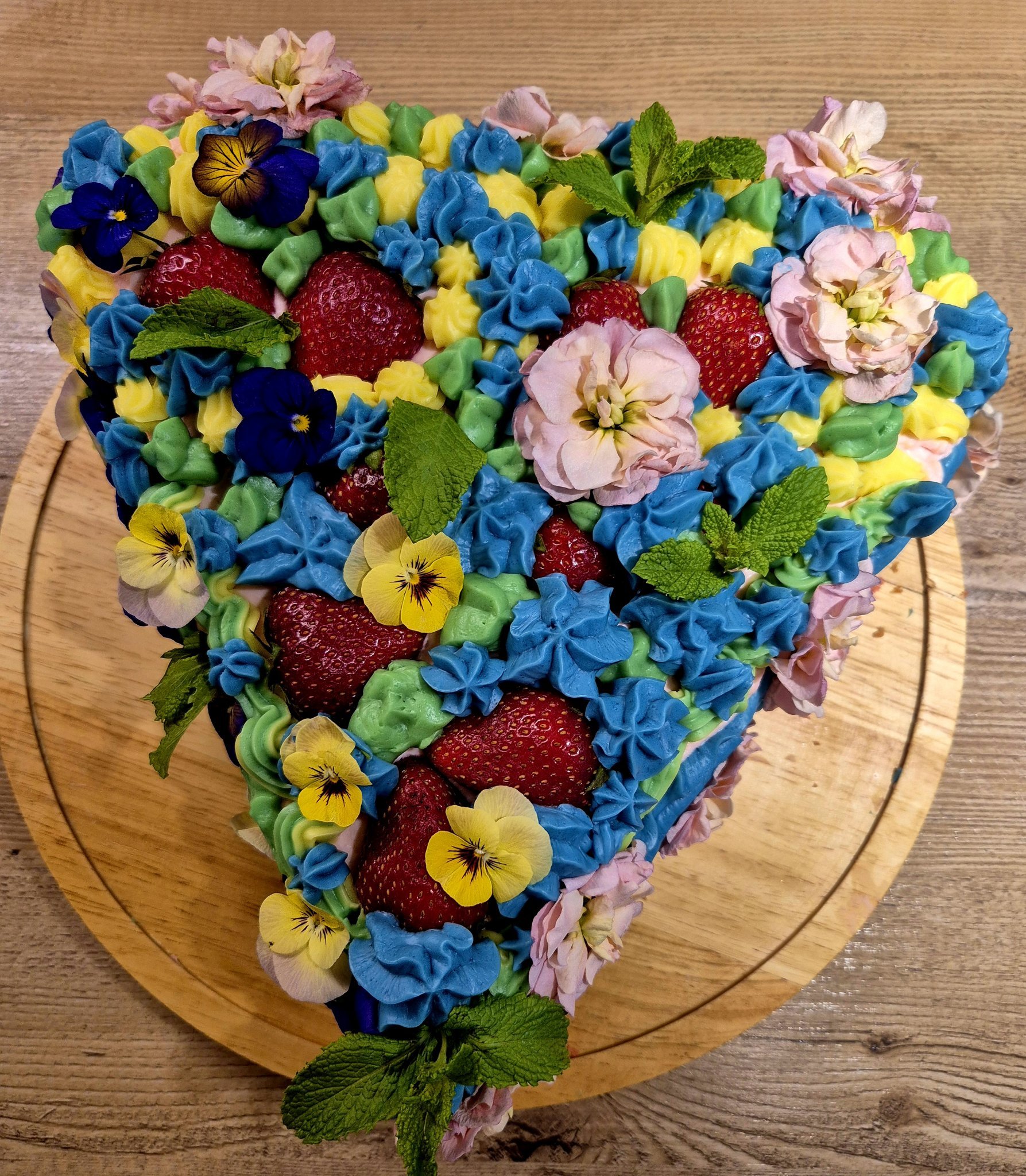 Понеже Верена е Еньовче, исках да има билки и цветя - затова сложих мента. Цветята са ядливи - купих ги от метро. Има доста голям избор. Сложих и плод - ягоди, те са най-добър приятел с ментата 🤭